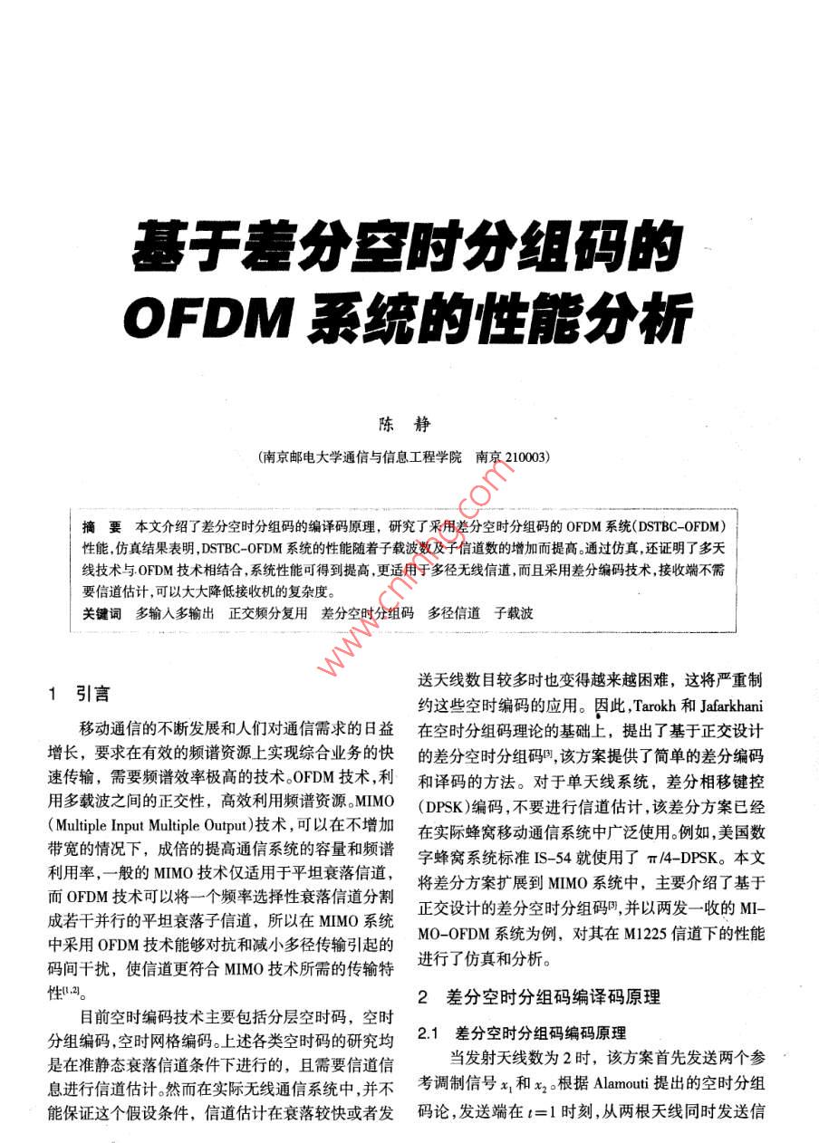 基于差分空時分組碼的OFDM系統(tǒng)的性能分析
