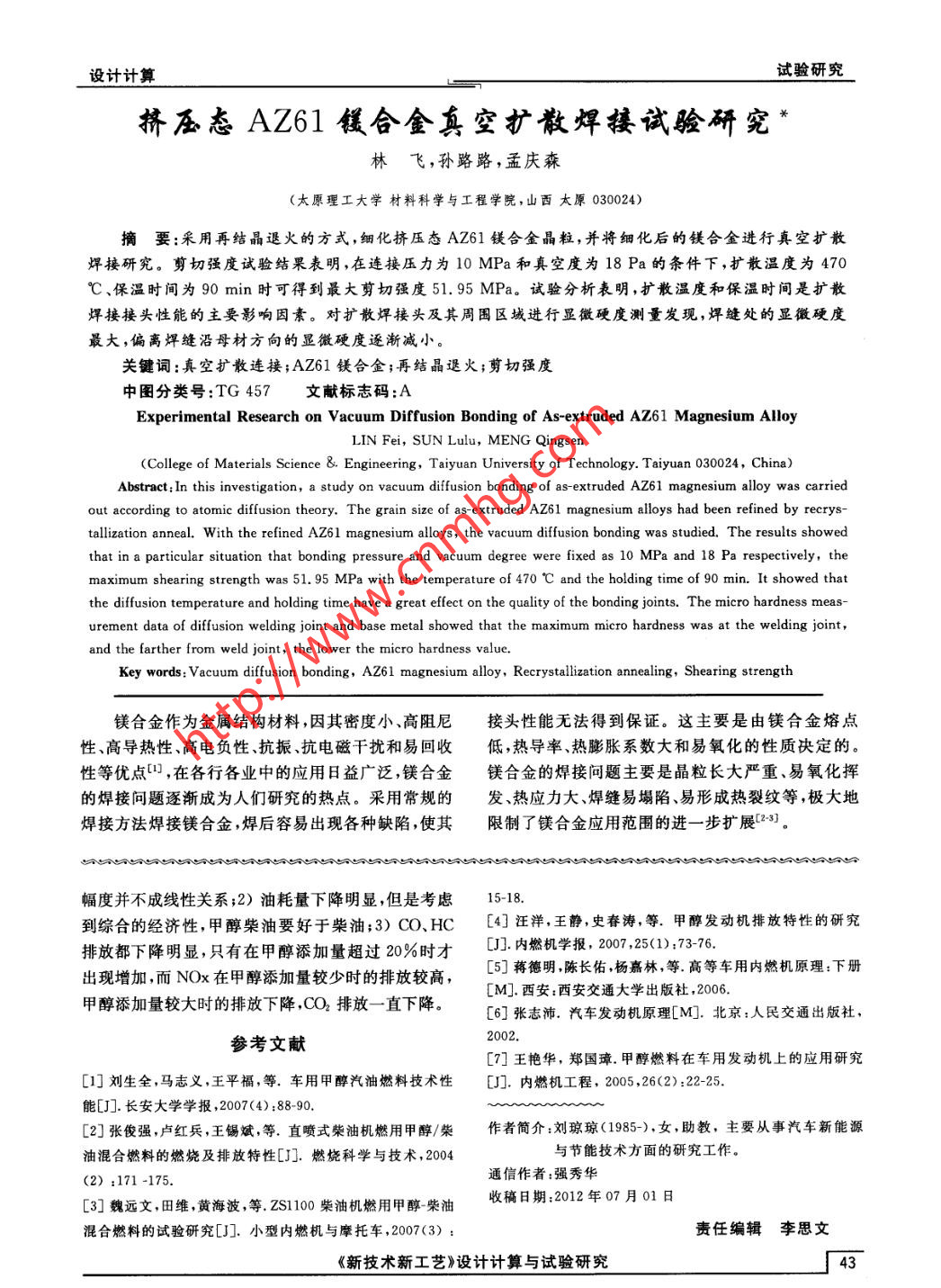 - 期刊名字:新技術(shù)新工藝