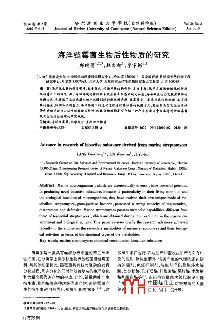 海洋鏈霉菌生物活性物質(zhì)的研究