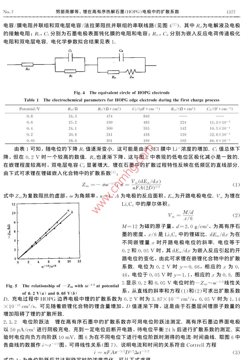 鋰在高有序熱解石墨(HOPG)電極中的擴散系數(shù)