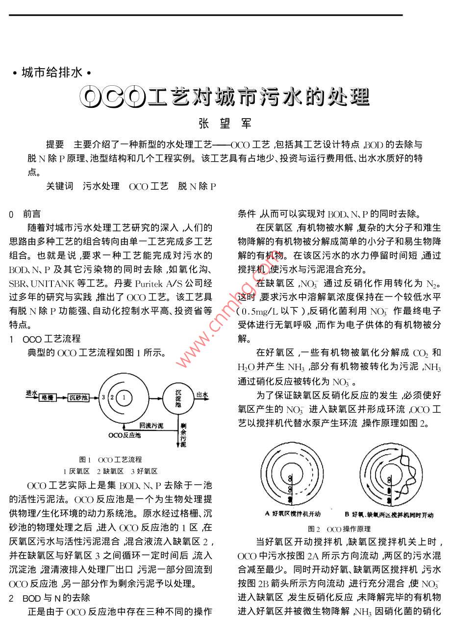 OCO工藝對城市污水的處理