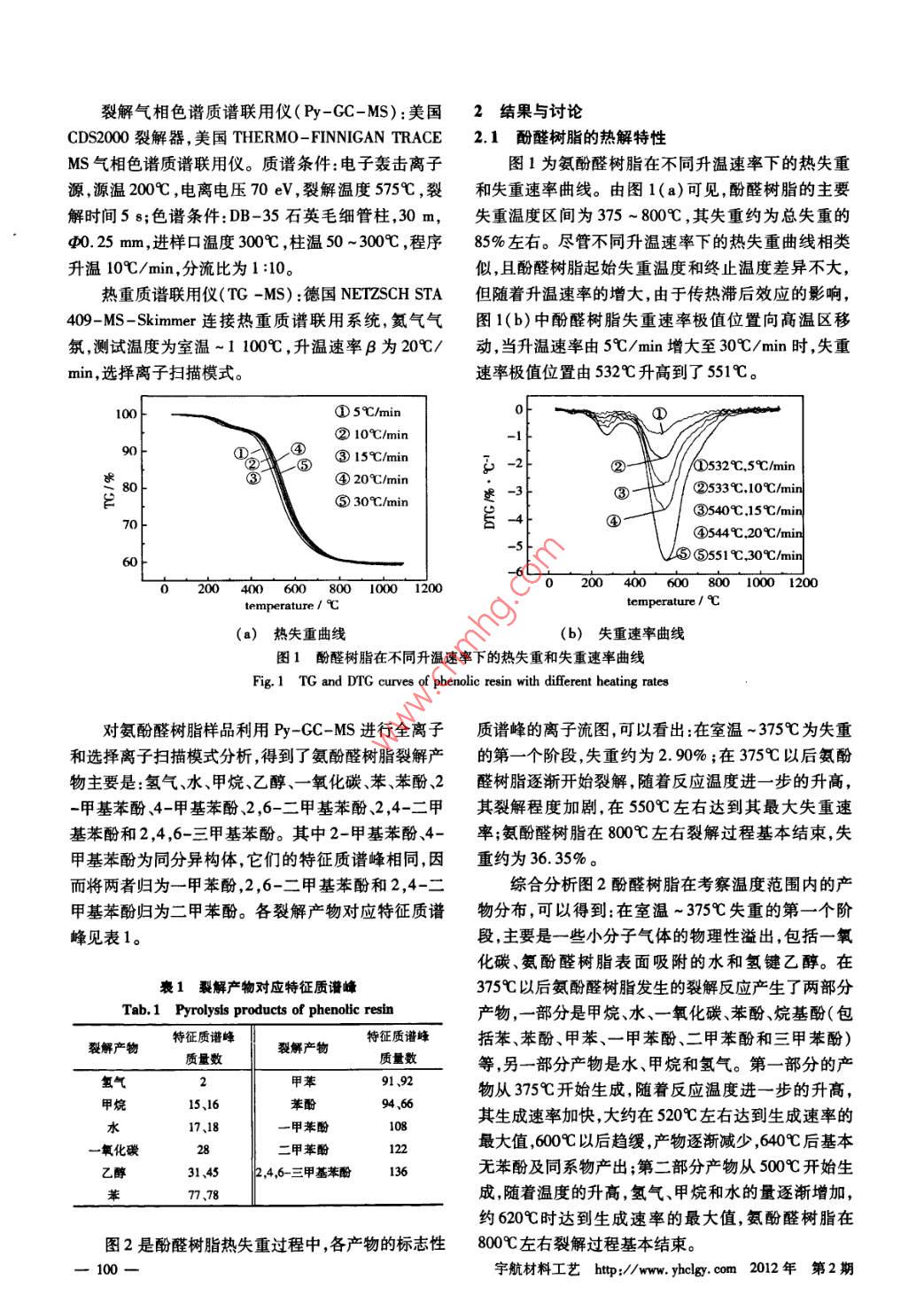 熱重質(zhì)譜聯(lián)用技術(shù)對(duì)酚醛樹(shù)脂熱解行為及動(dòng)力學(xué)研究