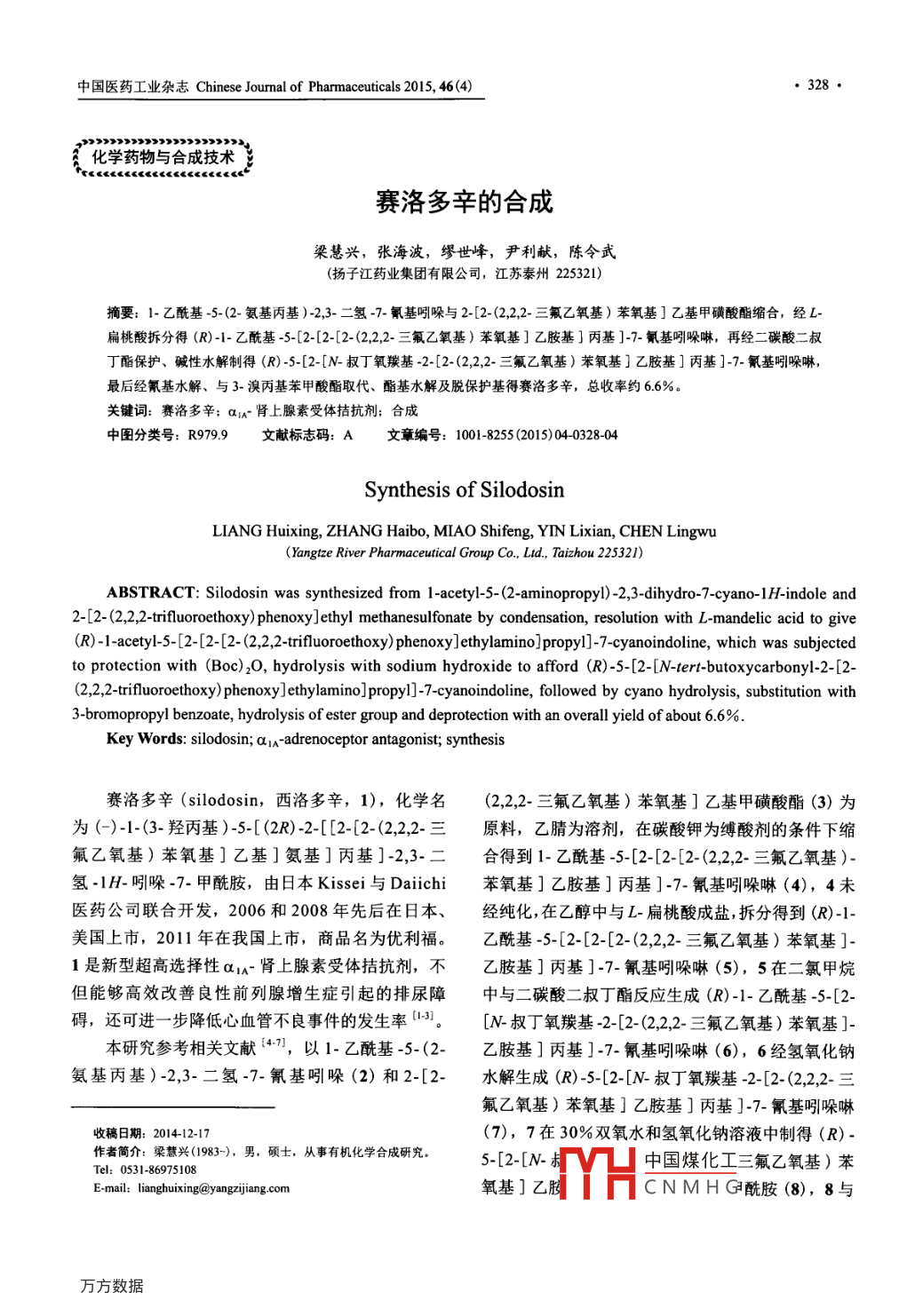 中國醫(yī)藥工業(yè)雜志Chinese Journal of Pharmaceuticals 2015, 46(4)●328●化學(xué)藥物與合成技術(shù)eeeuu
