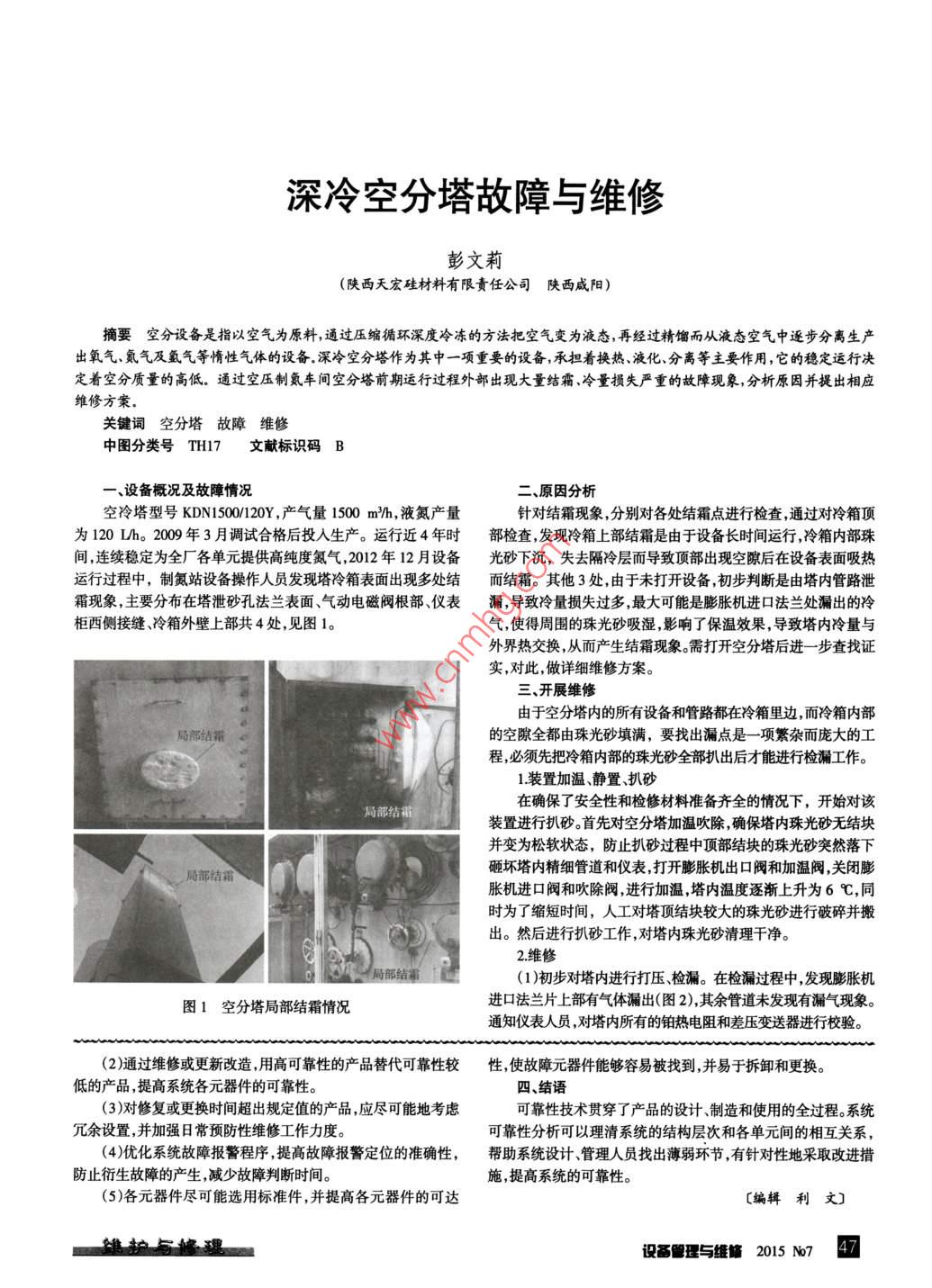深冷空分塔故障與維修