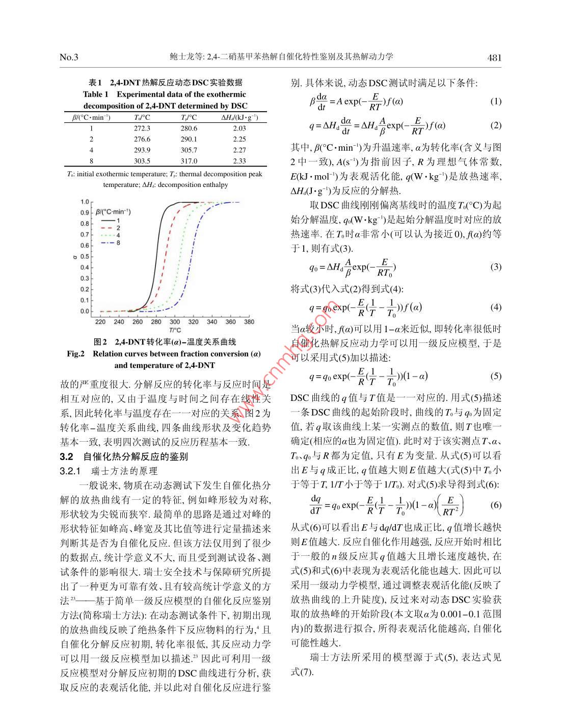 2,4-二硝基甲苯熱解自催化特性鑒別及其熱解動力學(xué)