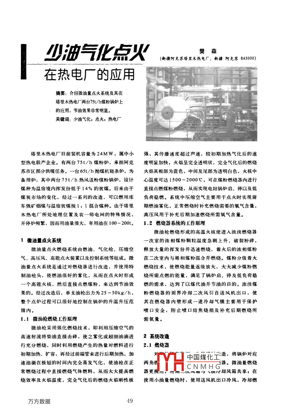 少油氣化點(diǎn)火在熱電廠的應(yīng)用