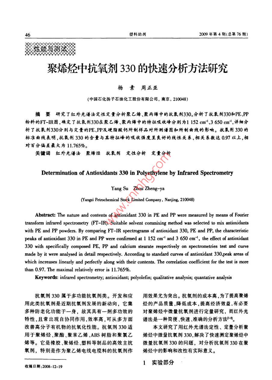 聚烯烴中抗氧劑330的快速分析方法研究