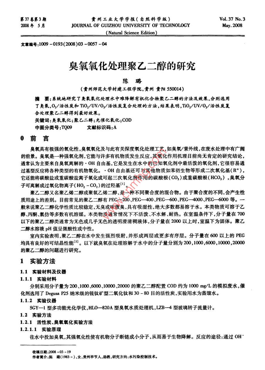 臭氧氧化處理聚乙二醇的研究