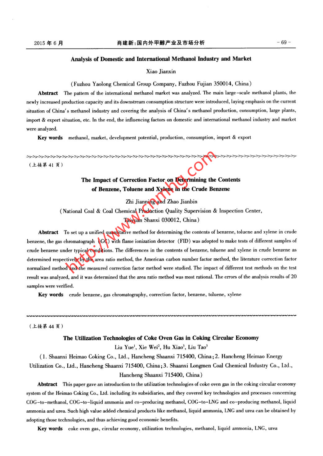 - 期刊名字:煤化工