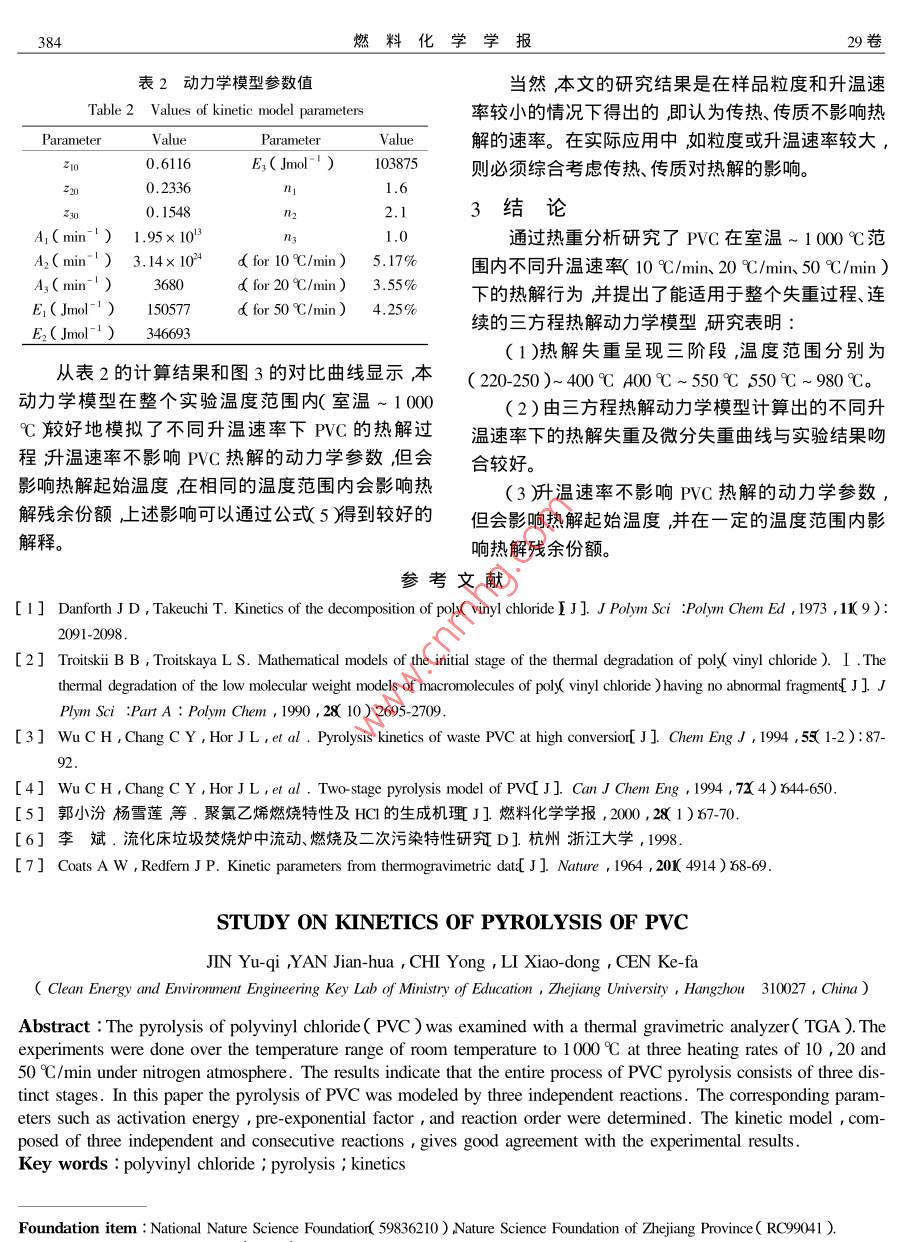 PVC熱解動(dòng)力學(xué)的研究