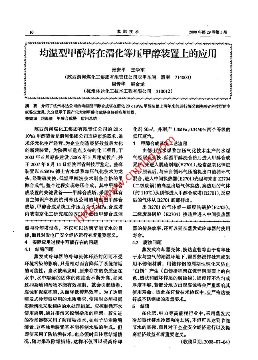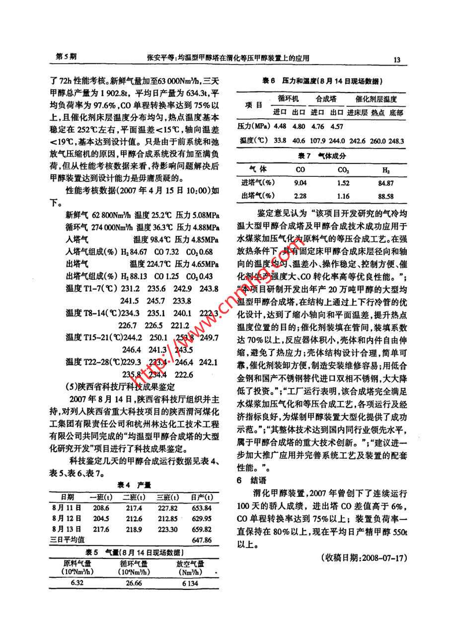 均溫型甲醇塔在渭化等壓甲醇裝置上的應(yīng)用 均溫型甲醇塔在渭化等壓甲醇裝置上的應(yīng)用