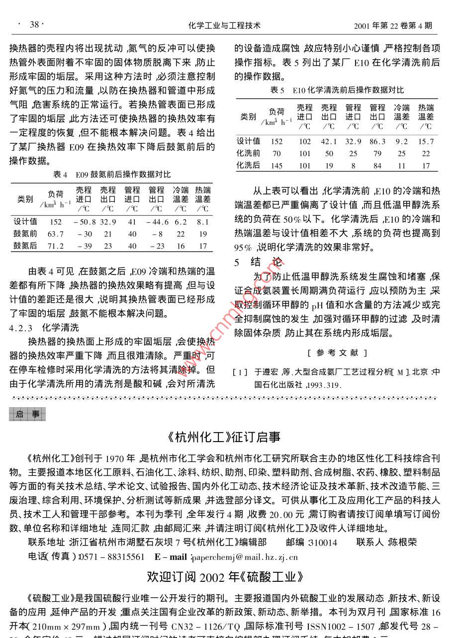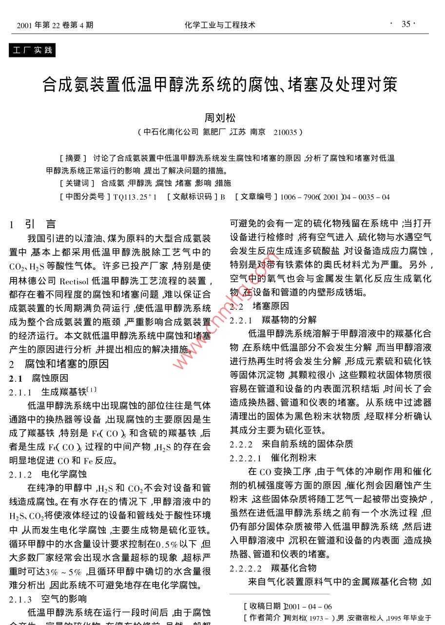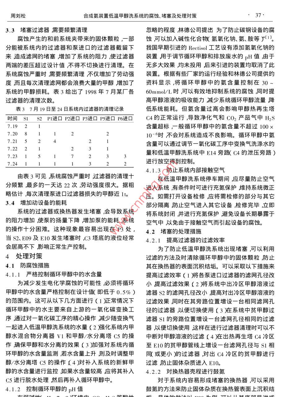 合成氨裝置低溫甲醇洗系統(tǒng)的腐蝕、堵塞及處理對(duì)策 合成氨裝置低溫甲醇洗系統(tǒng)的腐蝕、堵塞及處理對(duì)策