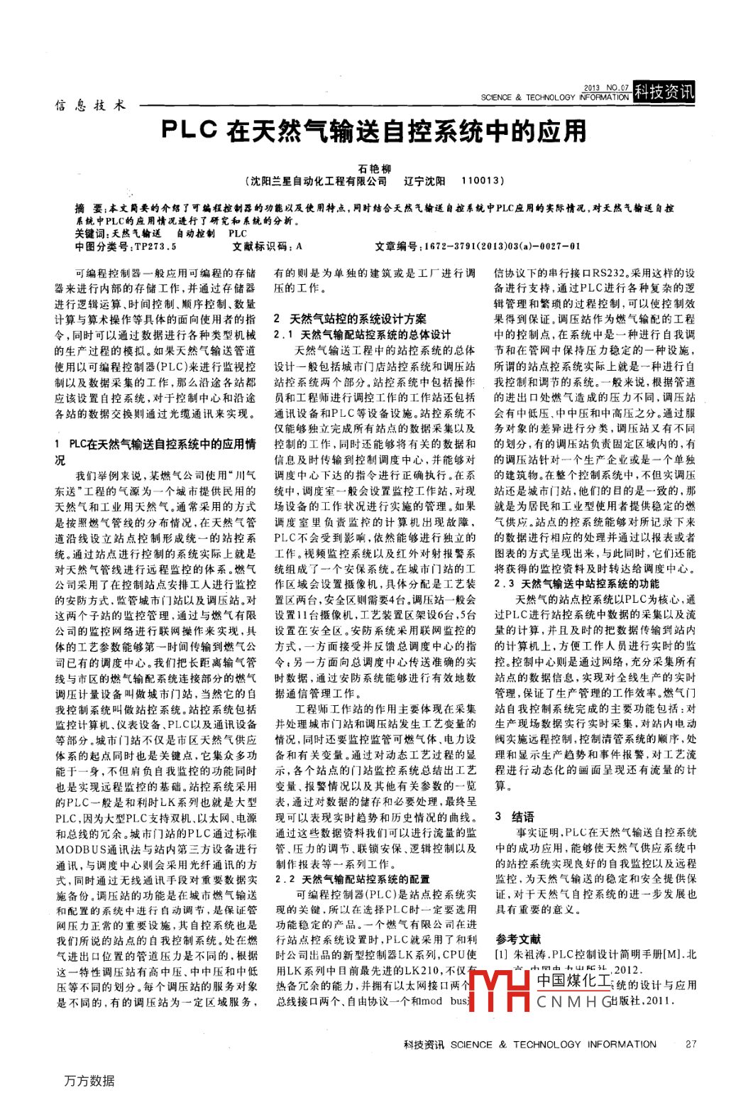 PLC在天然氣輸送自控系統(tǒng)中的應(yīng)用