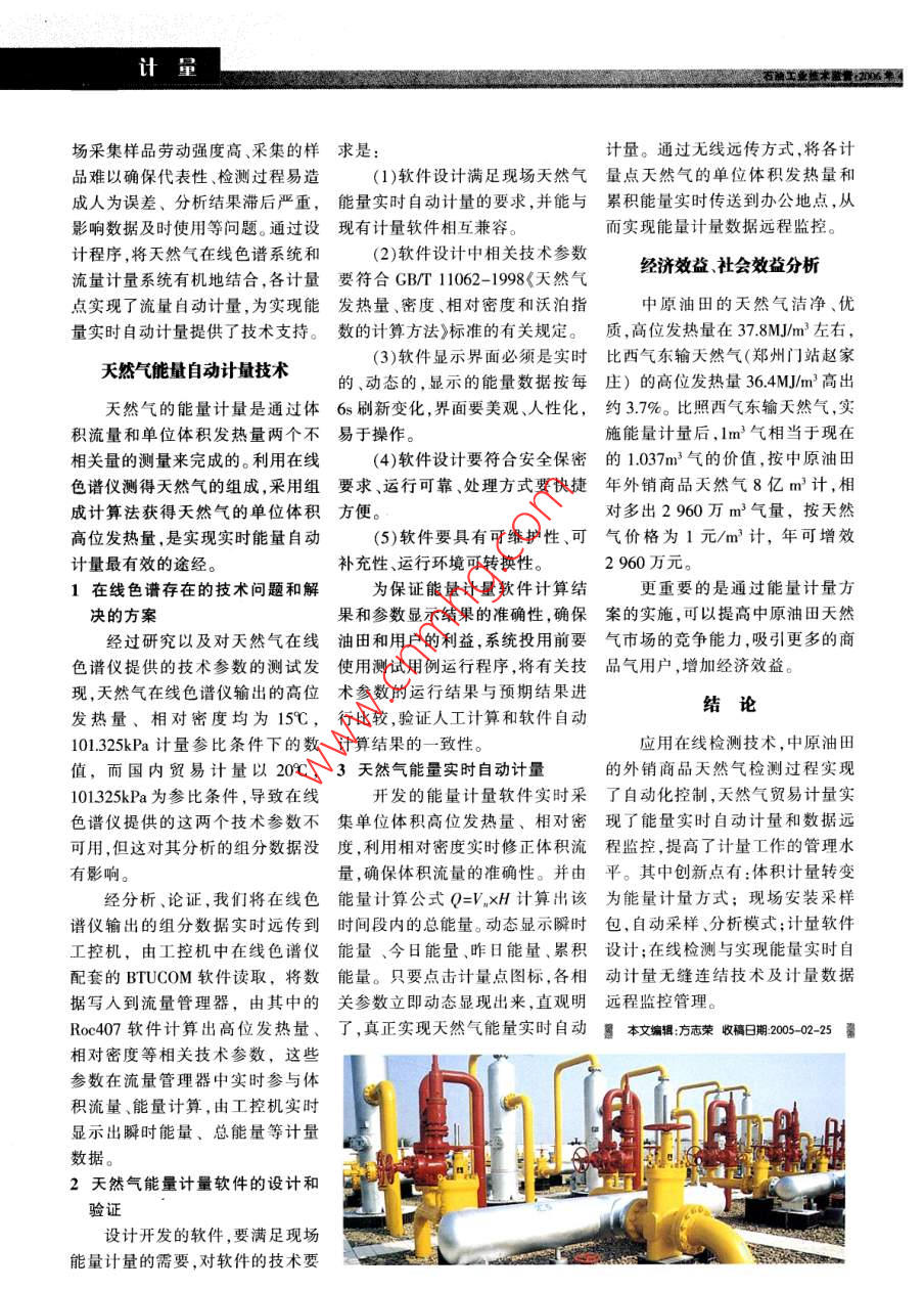 談天然氣能量實(shí)時自動計量