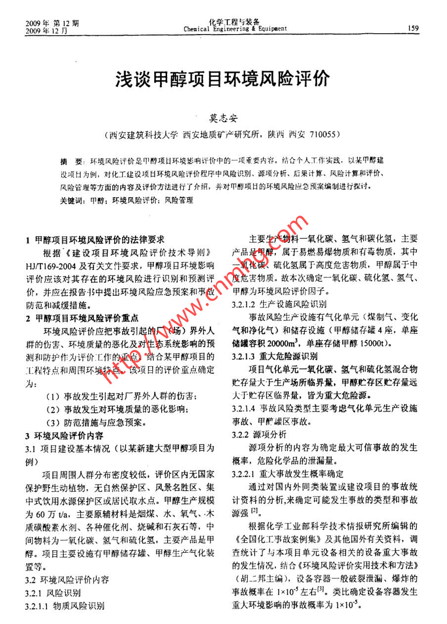 淺談甲醇項目環(huán)境風(fēng)險評價