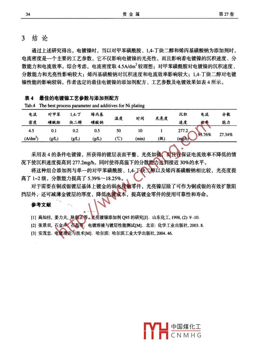電鍍鎳組合添加劑研究