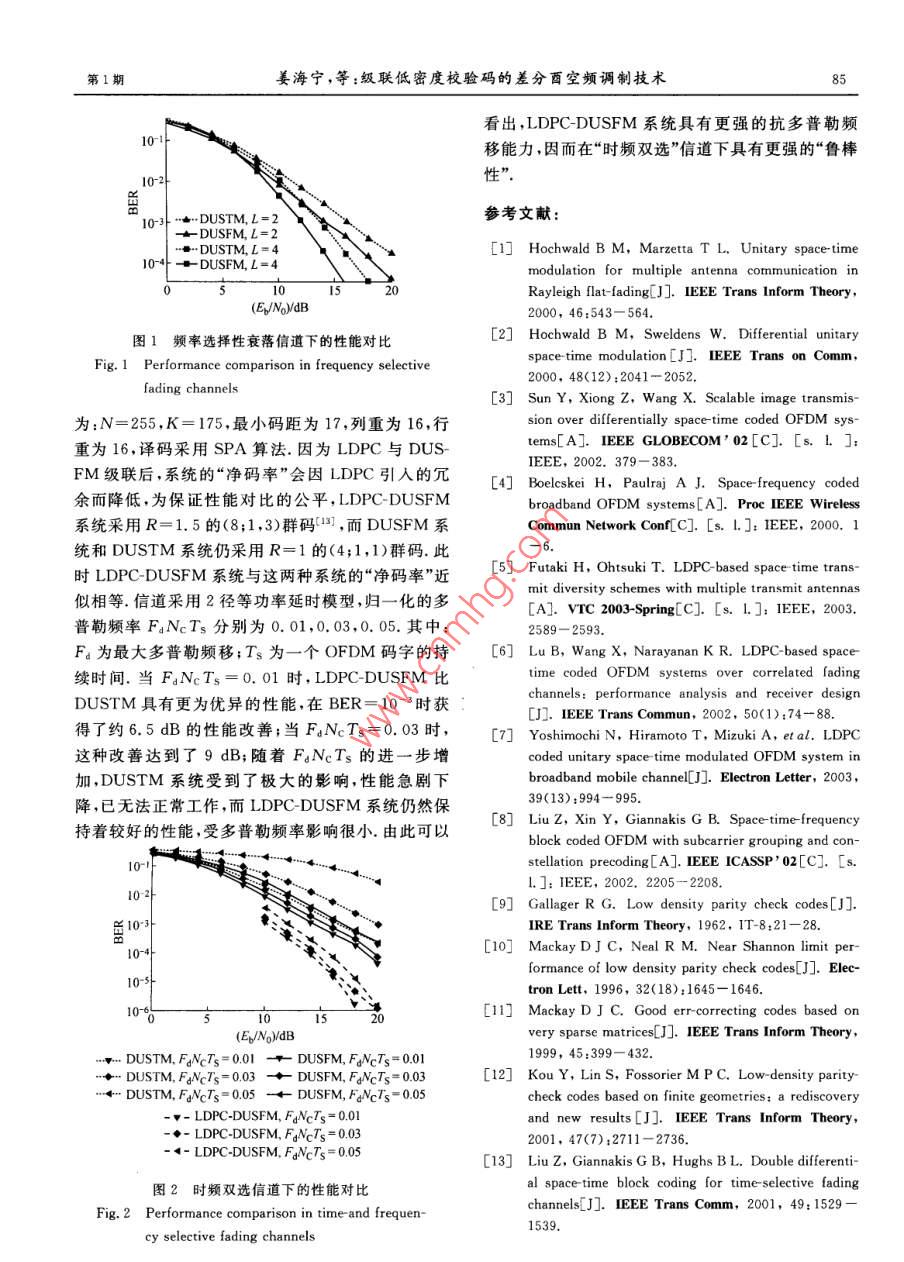 級聯(lián)低密度校驗碼的差分酉空頻調(diào)制技術(shù)
