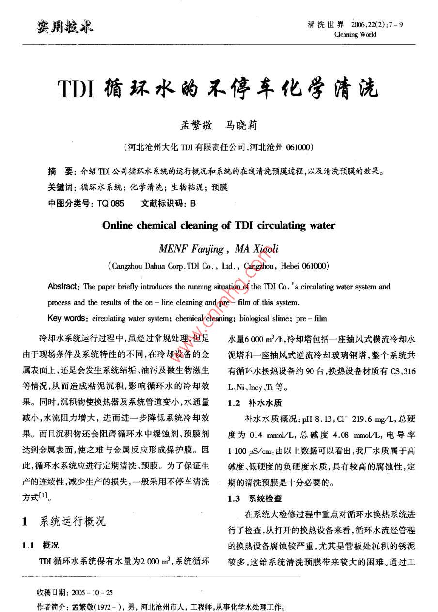 TDI循環(huán)水的不停車(chē)化學(xué)清洗