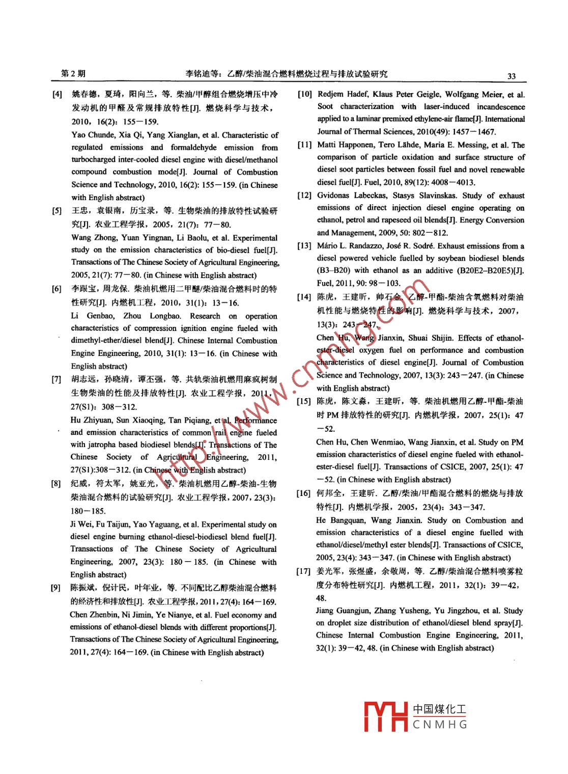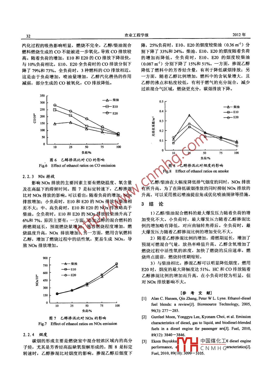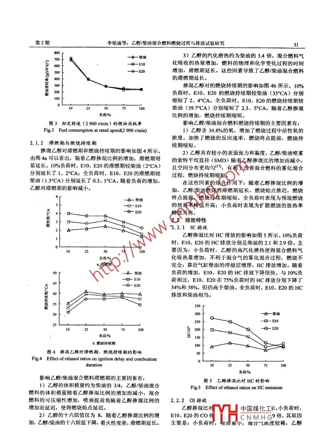 乙醇/柴油混合燃料燃燒過程與排放試驗研究