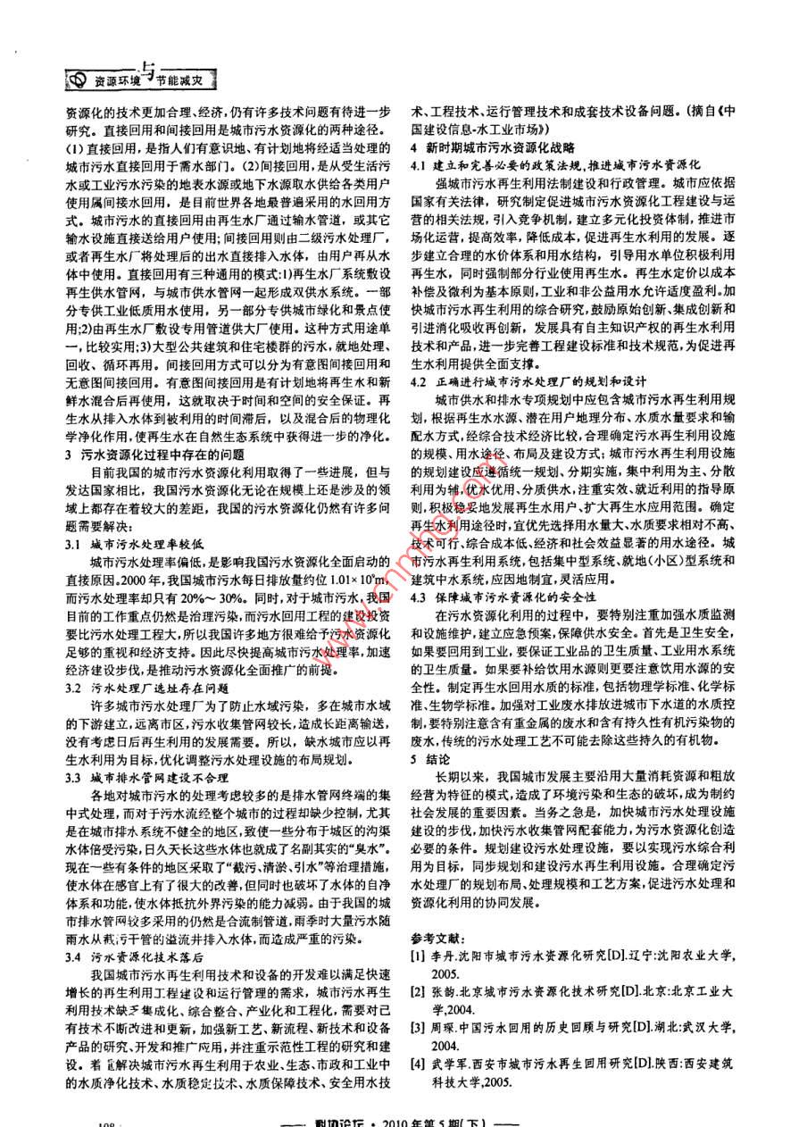 中國城市污水資源化研究