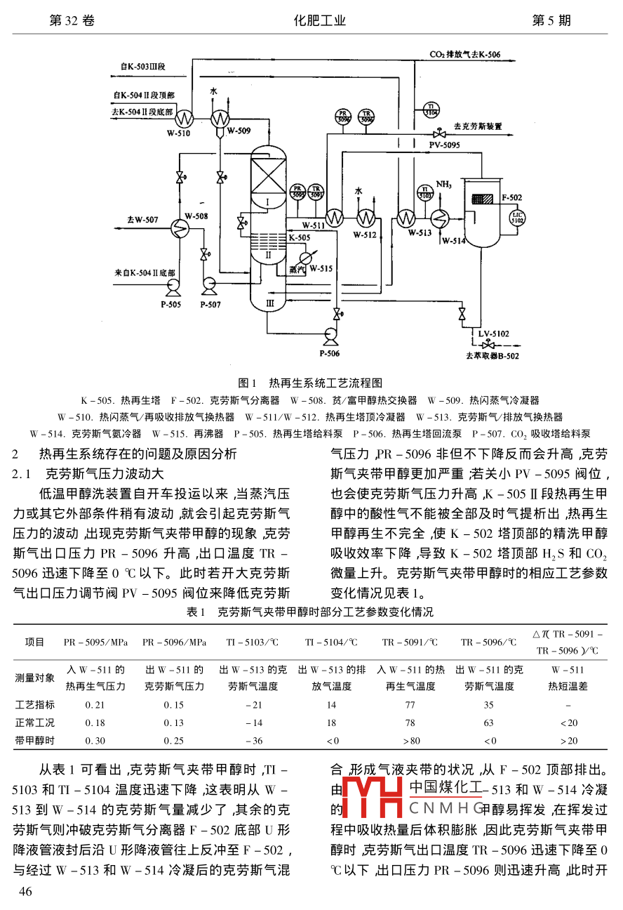 低溫甲醇洗熱再生系統(tǒng)存在的問題及改進(jìn)措施