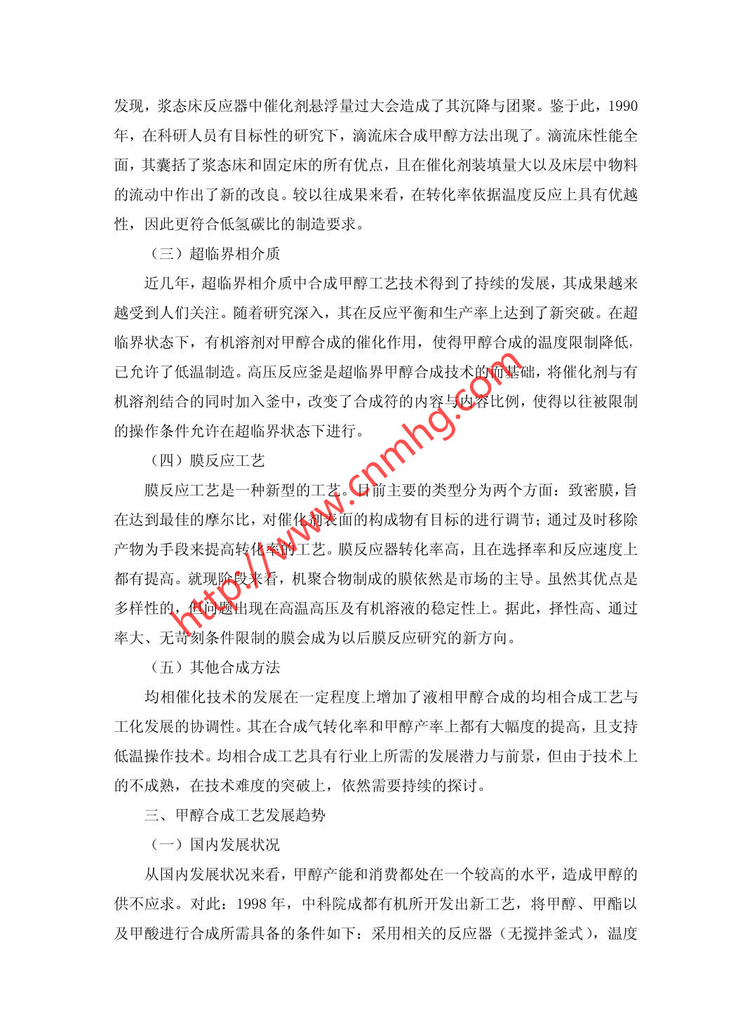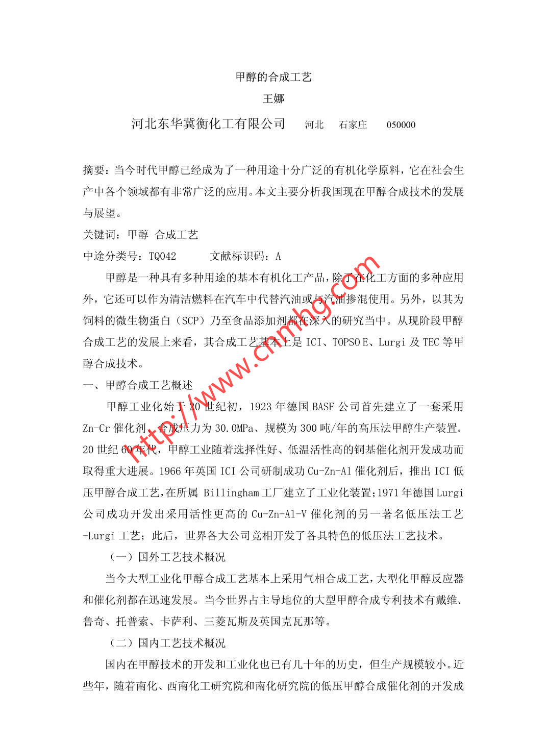 甲醇的合成工藝王娜河北東華冀衡化工有限公司河北 石家莊050000摘要:當(dāng)今時(shí)代甲醇已經(jīng)成為了一種用途十分廣泛的有機(jī)化學(xué)原料,它在社會生產(chǎn)中各個(gè)領(lǐng)域都有非常廣泛的應(yīng)用。本文主要分析我國現(xiàn)在甲醇合成技術(shù)的發(fā)展與展望。關(guān)鍵詞:甲醇合成工藝中途分類號: TQ042文獻(xiàn)標(biāo)識碼: I甲醇是-種具有多種用途的基本有機(jī)化工產(chǎn)品,除了在化工方面的多種應(yīng)用外,它還可以作為清潔燃料在汽車中代替汽油或與汽油摻混使用。另外,以其為飼料的微生物蛋白(SCP) 乃至食品添加劑都在深入的研究當(dāng)中。從現(xiàn)階段甲醇合成工藝的發(fā)展上來看,其合成工藝基本上是ICI、TOPSOE、Lurgi 及TEC等甲醇合成技術(shù)。一、甲醇合成工藝概述甲醇工業(yè)化始于20世紀(jì)初,1923 年德國BASF公司首先建立了一套采用Zn-Cr催化劑、合成壓力為30. 0MPa、規(guī)模為300噸/年的高壓法甲醇生產(chǎn)裝置。20世紀(jì)60年代,甲醇工業(yè)隨著選擇性好、低溫活性高的銅基催化劑開發(fā)成功而取得重大進(jìn)展。1966 年英國ICI公司研制成功Cu-Zn-Al催化劑后,推出ICI低壓甲醇合成工藝,在所屬Billingham 工廠建立了工業(yè)化裝置; 1971年德國Lurgi公司成功開發(fā)出采用活性更高的Cu-Zn-A1-V催化劑的另-一著名低壓法工藝-Lurgi工藝;此后,世界各大公司競相開發(fā)了各具特色的低壓法工藝技術(shù)。(一)國外工藝技術(shù)概況當(dāng)今大型:工業(yè)化甲醇合成工藝基本上采用氣相合成工藝,大型化甲醇反應(yīng)器和催化劑都在迅速發(fā)展。當(dāng)今世界占主導(dǎo)地位的大型甲醇合成專利技術(shù)有戴維、魯奇、托普索、卡薩利、三菱瓦斯及英國克瓦那等。(二)國內(nèi)工藝技術(shù)概況國內(nèi)在甲醇技術(shù)的開發(fā)和工業(yè)化也已有幾十年的歷史,但生產(chǎn)規(guī)模較小。近些年,隨著南化、西南化工研究院和南化研究院的低壓甲醇合成催化劑的開發(fā)成功,甲醇合成技術(shù)開發(fā)取得了長足的進(jìn)步,特別是華東理工大學(xué)開發(fā)的管殼外冷-絕熱復(fù)合式固定床催化反應(yīng)器、杭州林達(dá)化工技術(shù)工程公司開發(fā)的低壓均溫合成甲醇反應(yīng)器均有工業(yè)運(yùn)行業(yè)績。二、發(fā)展成果(一)氣相甲醇合成工藝在早期的以CO、C02、 H2及少量的N2和CH4為原料的合成中,煤是其生產(chǎn)的關(guān)鍵性因素。40 年代以后,天然氣的發(fā)現(xiàn)與推廣,使生產(chǎn)方式發(fā)生轉(zhuǎn)變,以煤為原料的甲醇生產(chǎn)方式受到了市場的沖擊。但隨著時(shí)間的推移,未來能源的發(fā)展、環(huán)境保護(hù)關(guān)注度的增高又為原始生產(chǎn)方式提供了新的契機(jī),以煤為原料的甲醇生產(chǎn)又進(jìn)入了人們的視野。1.采用軸向反應(yīng)器的合成工藝ICI 與Lurgi工藝: 1984 年出現(xiàn)的冷管式合成塔與副產(chǎn)蒸汽合成塔,解決了以往反應(yīng)器床層內(nèi)溫差較大的問題,改善了性能,降低了在操作中的壓差。自20實(shí)際70年代以來,我國所建的甲醇裝置大都采用了這種工藝,使其成為目前市場的主要裝置。2.采用徑向反應(yīng)器的合成工藝:由于軸向反應(yīng)器反應(yīng)管徑的限制且有產(chǎn)率低、能耗高的缺點(diǎn),采用徑向反應(yīng)器的甲醇合成工藝越來越受到人們的重視。其能有效降低在生產(chǎn)過程中的能耗,便利催化劑的裝卸,成為目前甲醇工藝的目標(biāo)與方向。(二)液相甲醇合成工藝1.漿態(tài)床床合成工藝漿態(tài)床甲醇合成工藝) 19世紀(jì)80年代,美國Air AndChemicals開發(fā)了新的合成工藝即漿態(tài)床合成工藝。在此成果的引導(dǎo)下,1981年,日產(chǎn)5噸甲醇的中試裝置由美國德克薩斯拉波特聯(lián)合企業(yè)順利建成。考慮到當(dāng)時(shí)的發(fā)展水平與發(fā)展層次,1997 年建成相應(yīng)的工業(yè)化示范基地。經(jīng)過以往發(fā)展經(jīng)驗(yàn)的總結(jié),甲醇在不同氣化爐型產(chǎn)生的原料的合成中表現(xiàn)除了較高的適應(yīng)性。在高濃度的催化劑和高氣速的操作條件下,依然能保持較高的產(chǎn)率和日常量。因此,其發(fā)展前景是非??捎^的,在生產(chǎn)裝置工業(yè)化中有重要的存在價(jià)值。2.液態(tài)床技術(shù):1985年,以液相熱載體和流動反應(yīng)器為基礎(chǔ)的LPMEOHTM工藝被開發(fā)出來。經(jīng)過科研人員多次測試,驗(yàn)證了其混合均勻、支持等溫操作、反應(yīng)速率高的優(yōu)點(diǎn),且其催化劑用量只有管式固定床的三分之一。據(jù)以往研究數(shù)據(jù)發(fā)現(xiàn),漿態(tài)床反應(yīng)器中催化劑懸浮量過大會造成了其沉降與團(tuán)聚。鑒于此,1990年,在科研人員有目標(biāo)性的研究下,滴流床合成甲醇方法出現(xiàn)了。滴流床性能全面,其囊括了漿態(tài)床和固定床的所有優(yōu)點(diǎn),且在催化劑裝填量大以及床層中物料的流動中作出了新的改良。較以往成果來看,在轉(zhuǎn)化率依據(jù)溫度反應(yīng)上具有優(yōu)越性,因此更符合低氫碳比的制造要求。(三)超臨界相介質(zhì)近幾年,超臨界相介質(zhì)中合成甲醇工藝技術(shù)得到了持續(xù)的發(fā)展,其成果越來越受到人們關(guān)注。隨著研究深入,其在反應(yīng)平衡和生產(chǎn)率上達(dá)到了新突