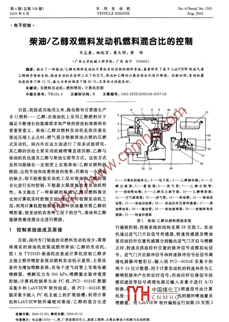 柴油/乙醇雙燃料發(fā)動(dòng)機(jī)燃料混合比的控制
