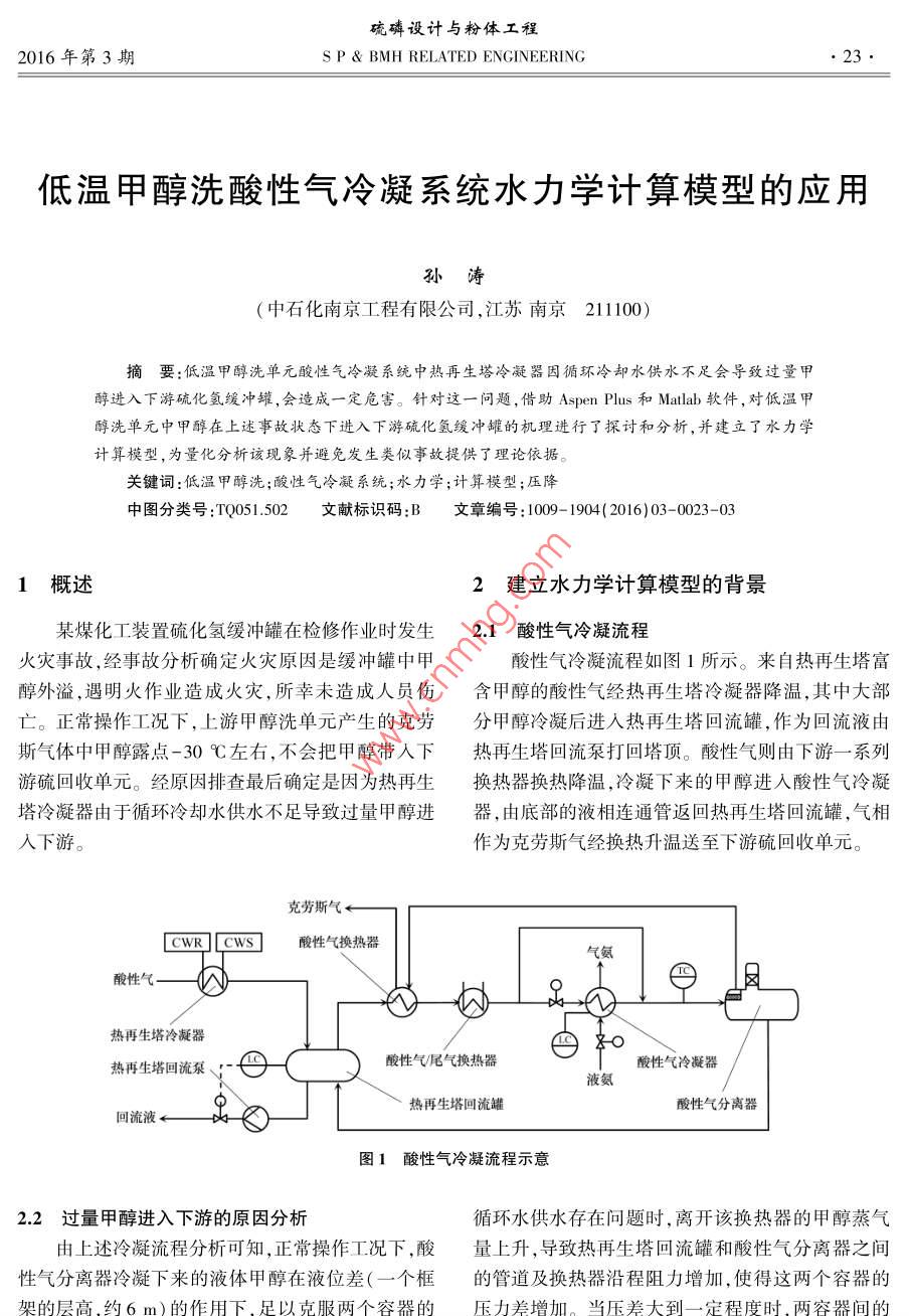 低溫甲醇洗酸性氣冷凝系統(tǒng)水力學(xué)計算模型的應(yīng)用