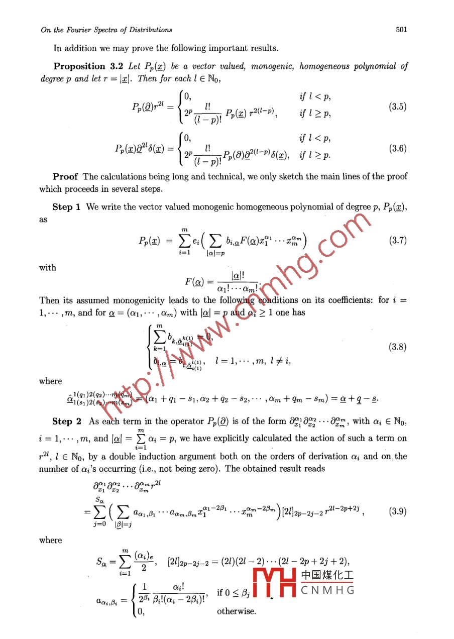 Chin. Ann. Math.27B(5), 2006, 495- -506Chinese Annals ofDOI: 10.1007/s11401-006-0053-3Mathematics, Series BC The Editorial Ofice of CAM andSpringer- Verlag Berlin Heidelberg 2006On the Fourier Spectra of Distributionsin Clifford AnalysisFred BRACKX* Bram De KNOCK* Hennie De SCHEPPER*Abstract In recent papers by Brackx, Delanghe and Sommen, some fundamental higherdimensional distributions have been reconsidered in the framework of Clifford analysis,eventually leading to the introduction of four broad classes of new distributions in Euclideanspace. In the current paper we continue the in-depth study of these distributions, morespecifically the study of their behaviour in frequency space, thus extending classical resultsof harmonic analysis.Keywords Fourier spectra, Distributions, Cliford analysis2000 MR Subject Classifcation 30G35, 46F101 IntroductionDuring the last fty years, Cliford analysis has gained interest as a comprehensive functiontheory offering a direct, elegant and powerful generalization to higher dimension of the theoryof holomorphic functions in the complex plane. In its most simple but still useful setting,fat m-dimensional Euclidean space, Cliford analysis is centered around so-called monogenicfunctions, i.e. null solutions of the Cliford-vector valued Dirac operatora=Ee38x,where (e1,... , em) forms an orthogonal basis for the quadratic space Rm underlying the con-struction of the Cliford algebra Ro,m. Monogenic functions have a special relationship withharmonic functions of several variables in that they are refining their properties. Note for in-stance that each harmonic function can be split into a so-called inner and an outer monogenicfunction, and that a real harmonic function is always the real part of a monogenic one, whichdoes not need to be the case for a harmonic function of several cqmplex variables. The reason isthat, as does the Cauchy -Riemann operator in the complex plane, the rotation- invariant Diracoperator factorizes the m-dimensional Laplace operator. It hence is not surprising that Cliffordanalysis often leads to refinements or generalizations of classical results from harmonic analysis.In [3] and [4] four broad families of distributions in Euclidean space T.,p,Ux,p, V.,p andWx,p, depending on parametersλ∈C andp∈No= {0,1, 2,..}, were introduced and studiedin the framework of Cliford analysis. These distributiqne ol1 errina from theoroady cassically中國煤化工known distributionT\= Fpr李TYHCNMHGManuscript received January 26, 2006.*Ciford Research Group, Department of Mathematical Analysis, Faculty of Engineering, Ghent University,GalgIaan 2, 9000 Gent, Belgium. E mail: fb@cage.UGent.be bdk@cage.UGent.be hds@cage.UGent.be496F. Brackx, B. De Knock and H. De Schepperdepending on the complex parameter 入. Here Fp is the fundamental distribution “initeparts" on the real line, and spherical co-ordinates have been used to convert an originallym-dimensional distribution into one acting on the real line. More precisely,(Tx,中) = QmFp/*,r)+m-1[[h J_ . 中)(S(@)]) = (r+)-1+0)101),m-1where am is the area of the unit sphere sm- 1 in IRm and 20[中] denotes the so-called sphericalmean of the testing function φ, obtained through integration over the unit sphere. In these,spherical co- ordinates not only reflect the“spherical" philosophy of the approach, encompassingall dimensions at once as opposed to a cartesian or tensorial approach with products of one-dimensional phenomena, but also enable to carry out the explicit calculations in one dimensionafter which they are exported again to the original setting of Euclidean space.An analogous approach underlies the definition of the four families of distributions men-tioned above, which respectively involve the inner spherical monogenics Pp(四) (p∈No), ie,restrictions to the unit sphere of monogenic polynomials which are vector valued and homogeneous of degree p, and the related outer spherical monogenics Pp(@)業(yè),業(yè)Pp(四) and業(yè)Pp(四)4.Here, the spherical philosophy requires the introduction of generalized spherical means, wherethe involved spherical monogenic (inner or outer) appears in the integrand over the unit sphere.However, in view of the Fourier transformations aimed at, the distributions TA,p and their nor-malized versions T*。are now reconsidered from a cartesian point of view in Section 3 of thepaper.Any of the distributions in these families may be considered as a kernel (K) for a convolu-tion operator (L): L[f]= K*f. As is well known, see [20], such an operator may be realizedin frequency space by a multiplication operator, its so- clldl Fourier symbo: F[f]] = aF[f],where a = F[K]. This underlines the importance of calculating the Fourier transforms of thedistributions under consideration. It is worth mentioning that, for specifc values of the para-meters λ∈C and p∈No, those distributions turn into known kernel functions in harmonic andClifford analysis: up to constants, U_ m,0 reduces to Pv荒,the higher dimensional analogue ofthe so- called "Principal Value" distribution on the real line which constitutes the convolutionkernel for the higher dimensional Hilbert transform (see [5- 8]); U_ m+1,0 reduces to the funda-mental solution of the Dirac operator 2, while T_ m+2,0 is nothing but the fundamental solutionof the Laplace operator; furthermore, for λ = -p the inner and outer spherical monogenicsPp(4), Pp(@)4 and wP(4) are recovered; etc. Moreover when λ = -m- P the four fami-lies provide examples of so calld principal value distributions (see [13, 20]), being tempereddistributions obtained by a limiting process:(K,φ) = lim) JRM\B(0,e)K(x)中(x)dV(),φ∈ S(R").In [13, 20] much attention is paid to the calculation of the Fourier transforms of the principalvalue distributions where the function K takes the formK(x)=NC,出中國煤化工YHCNMHGwith k∈L2(Sm-1) such thatJ_k()dS(四) = 0.On the Fourier Spectru of Distributions497Such kind of principal value distrib