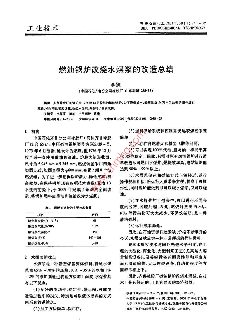 燃油鍋爐改燒水煤漿的改造總結(jié)
