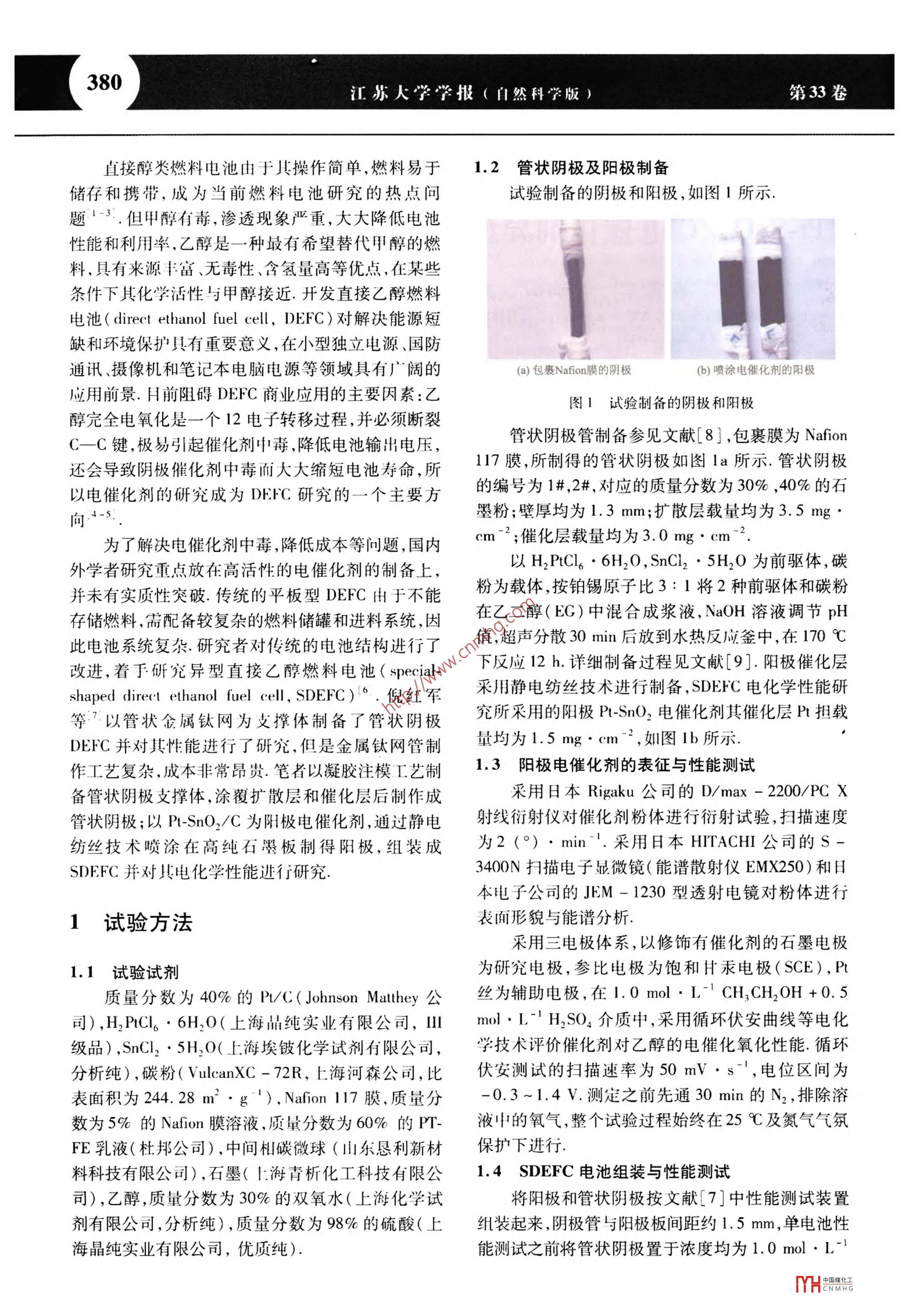 Pt-SnO2/C電催化劑異型直接乙醇燃料電池的性能