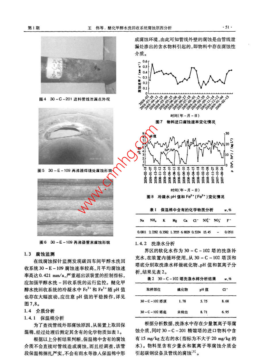 醚化甲醇水洗回收系統(tǒng)腐蝕原因分析