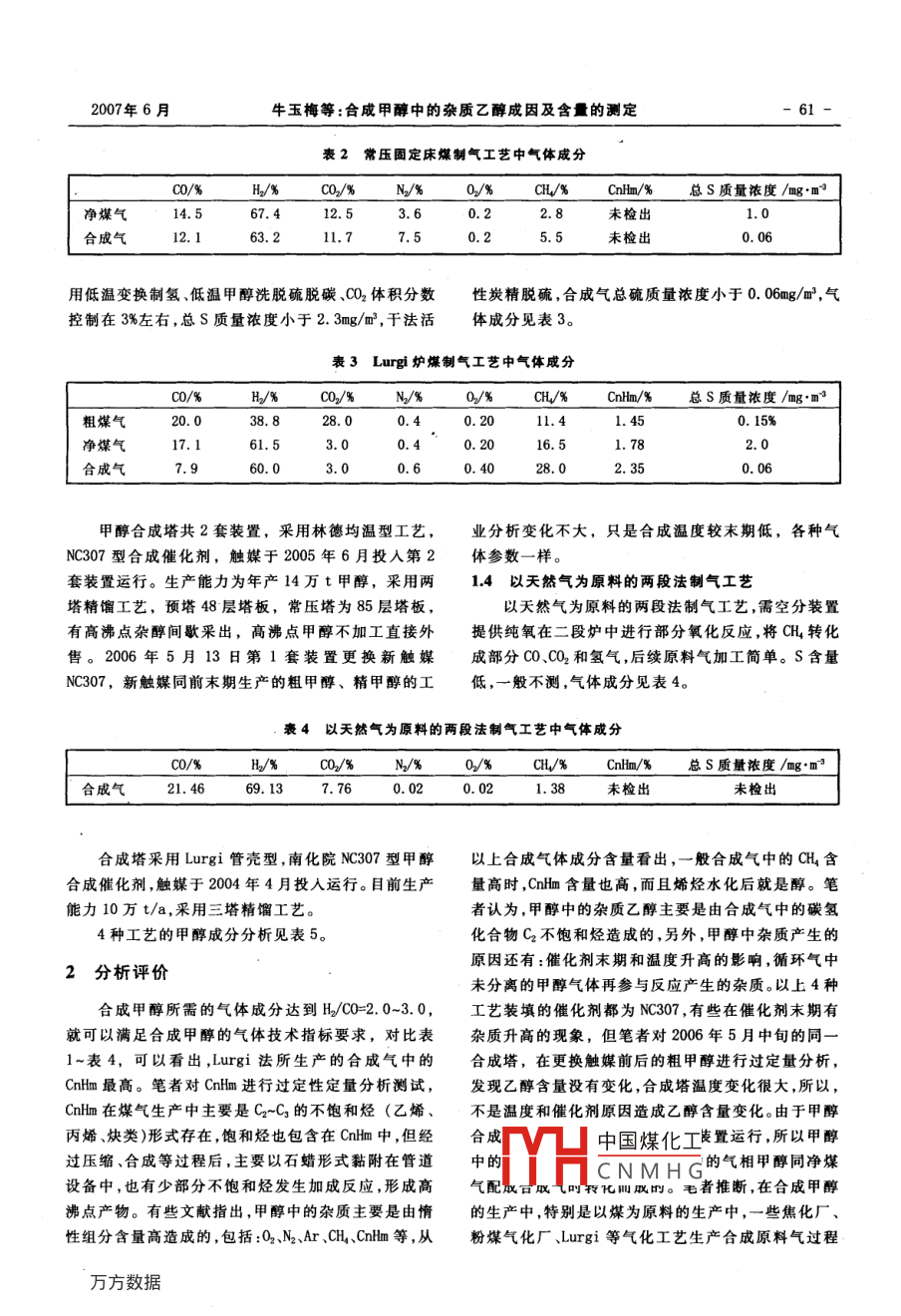 合成甲醇中的雜質(zhì)乙醇成因及含量的測定