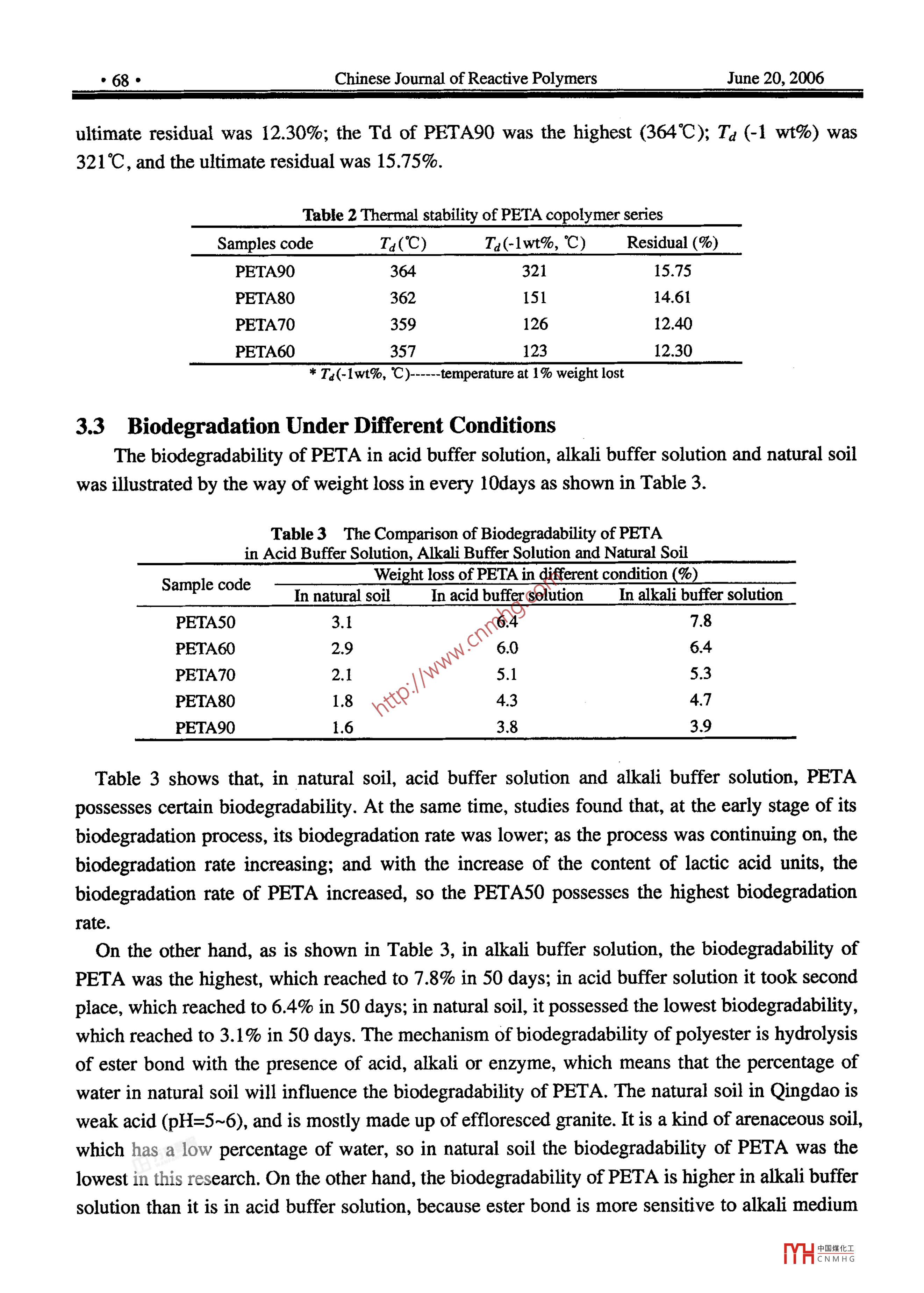 - 期刊名字:反應(yīng)性高分子(英文版)