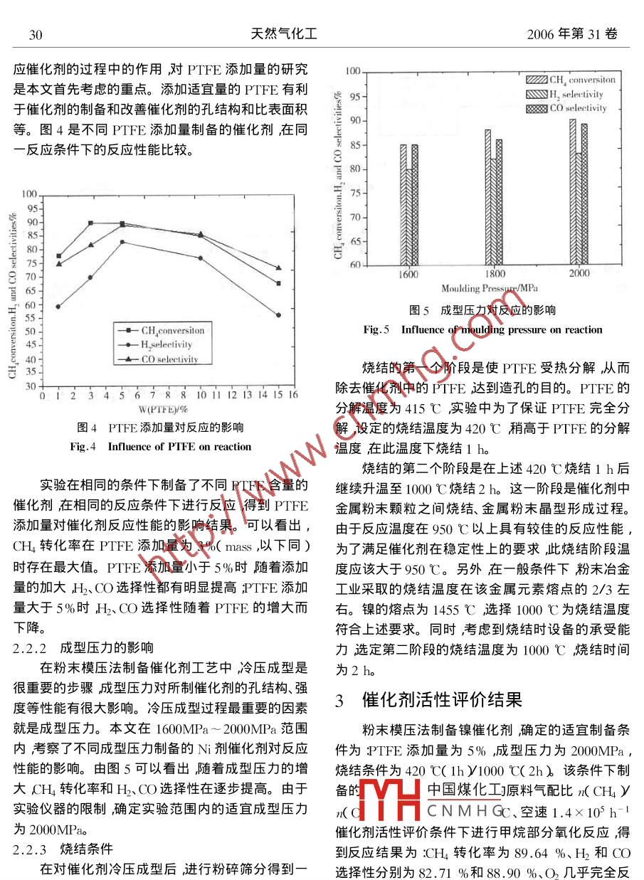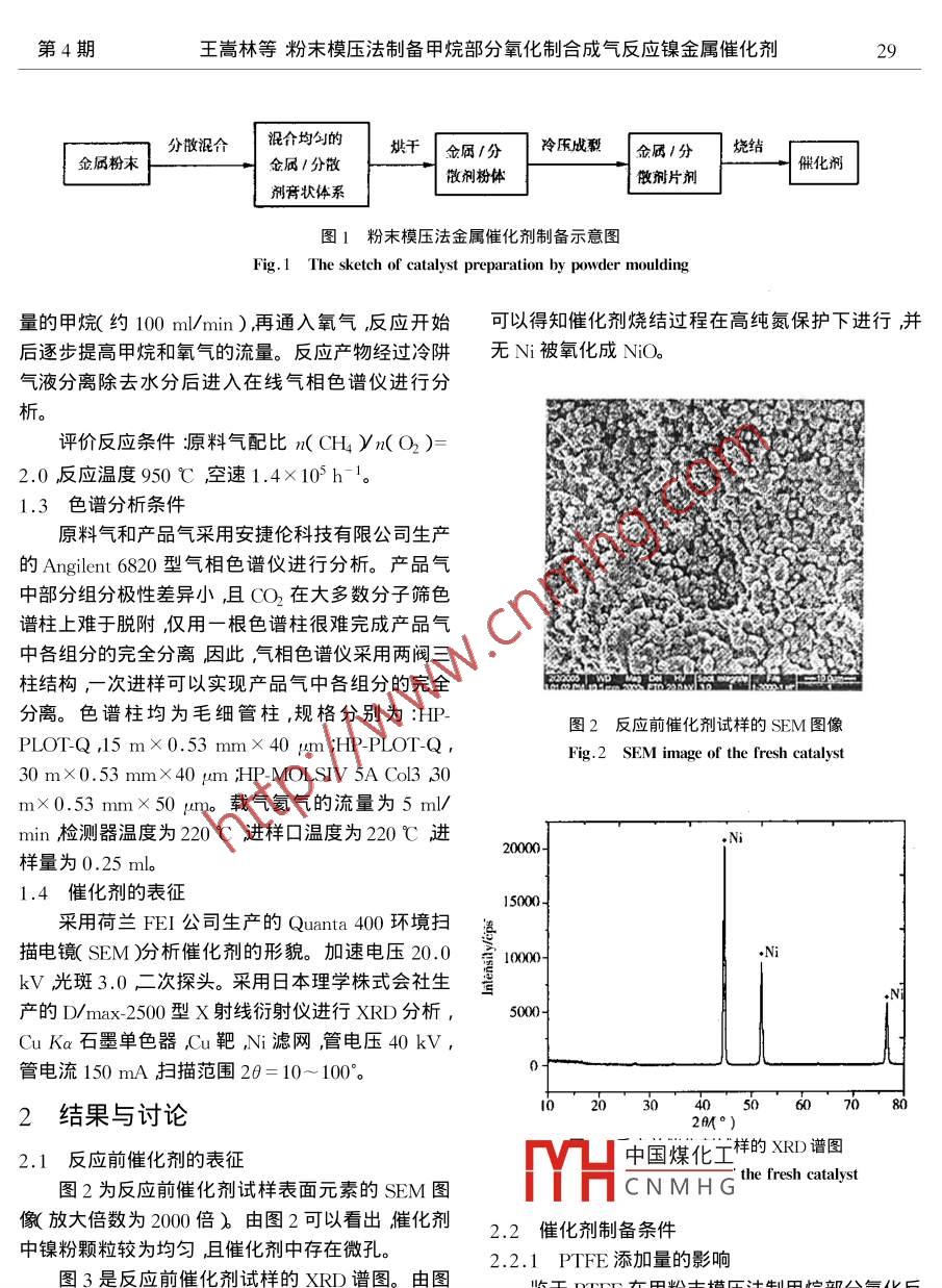 粉末模壓法制備甲烷部分氧化制合成氣反應鎳金屬催化劑