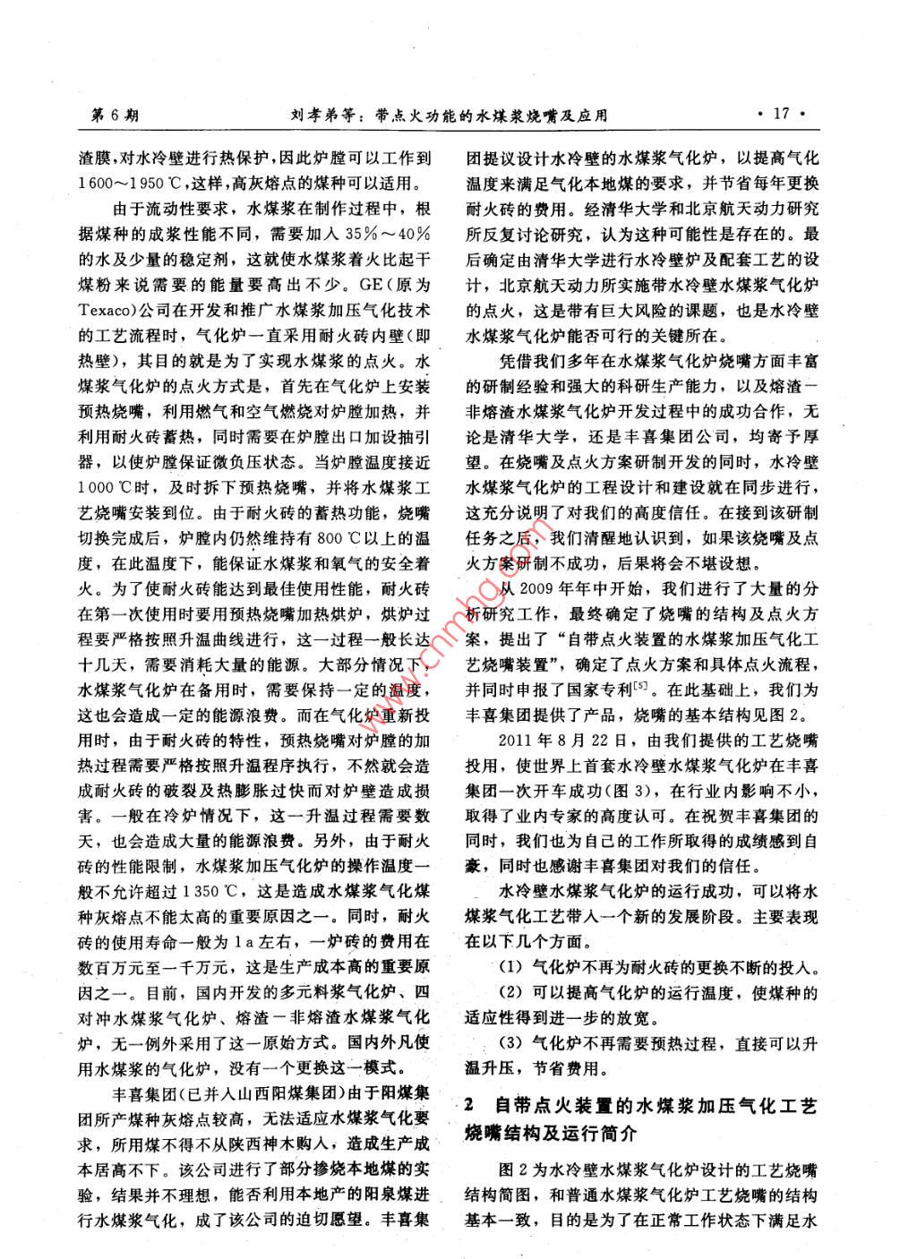 帶點(diǎn)火功能的水煤漿燒嘴及應(yīng)用