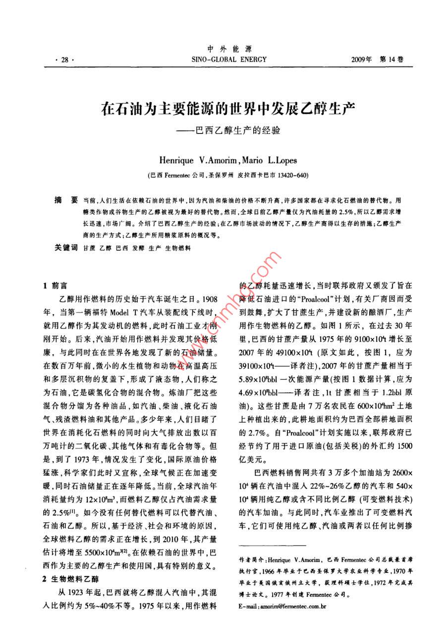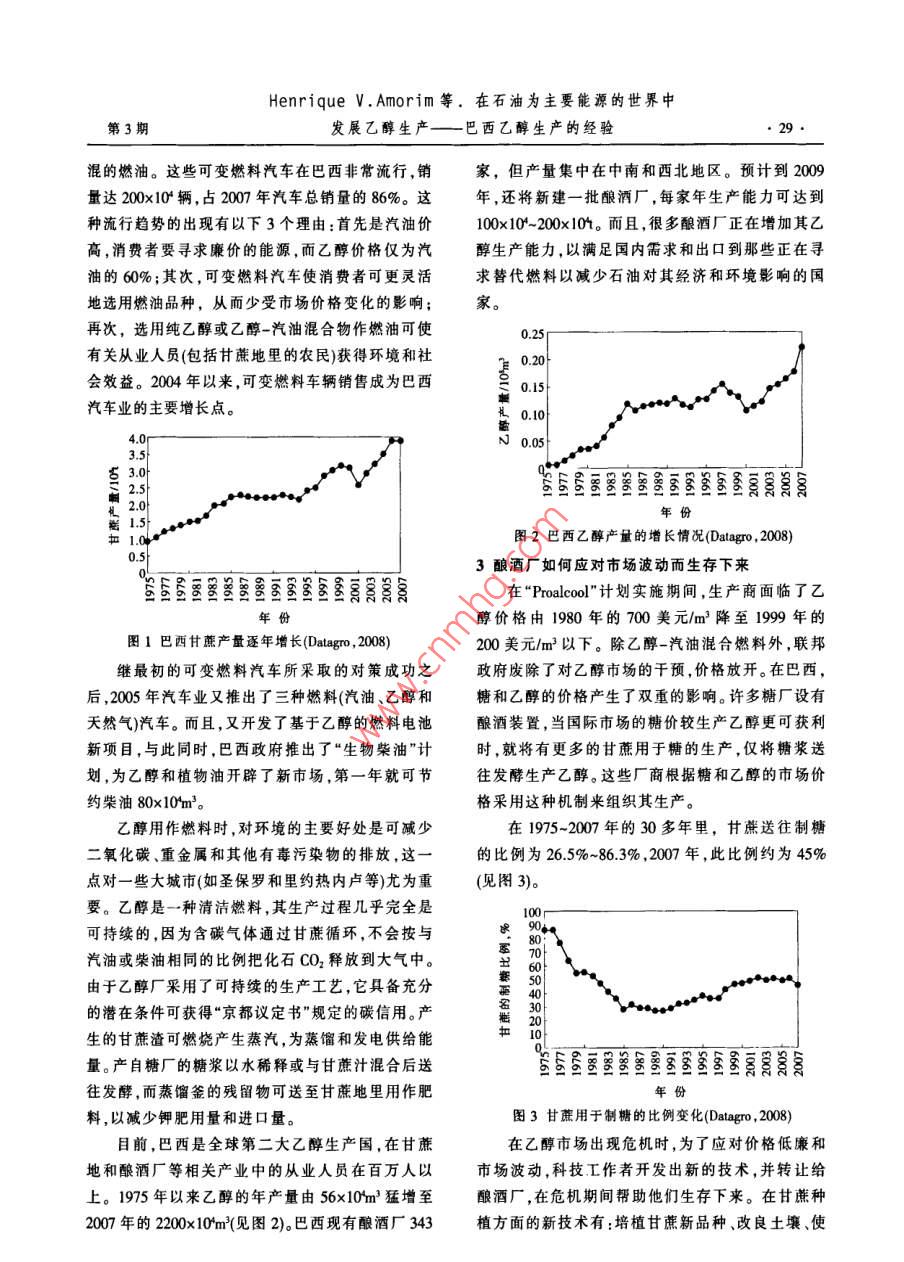 在石油為主要能源的世界中發(fā)展乙醇生產(chǎn)——巴西乙醇生產(chǎn)的經(jīng)驗