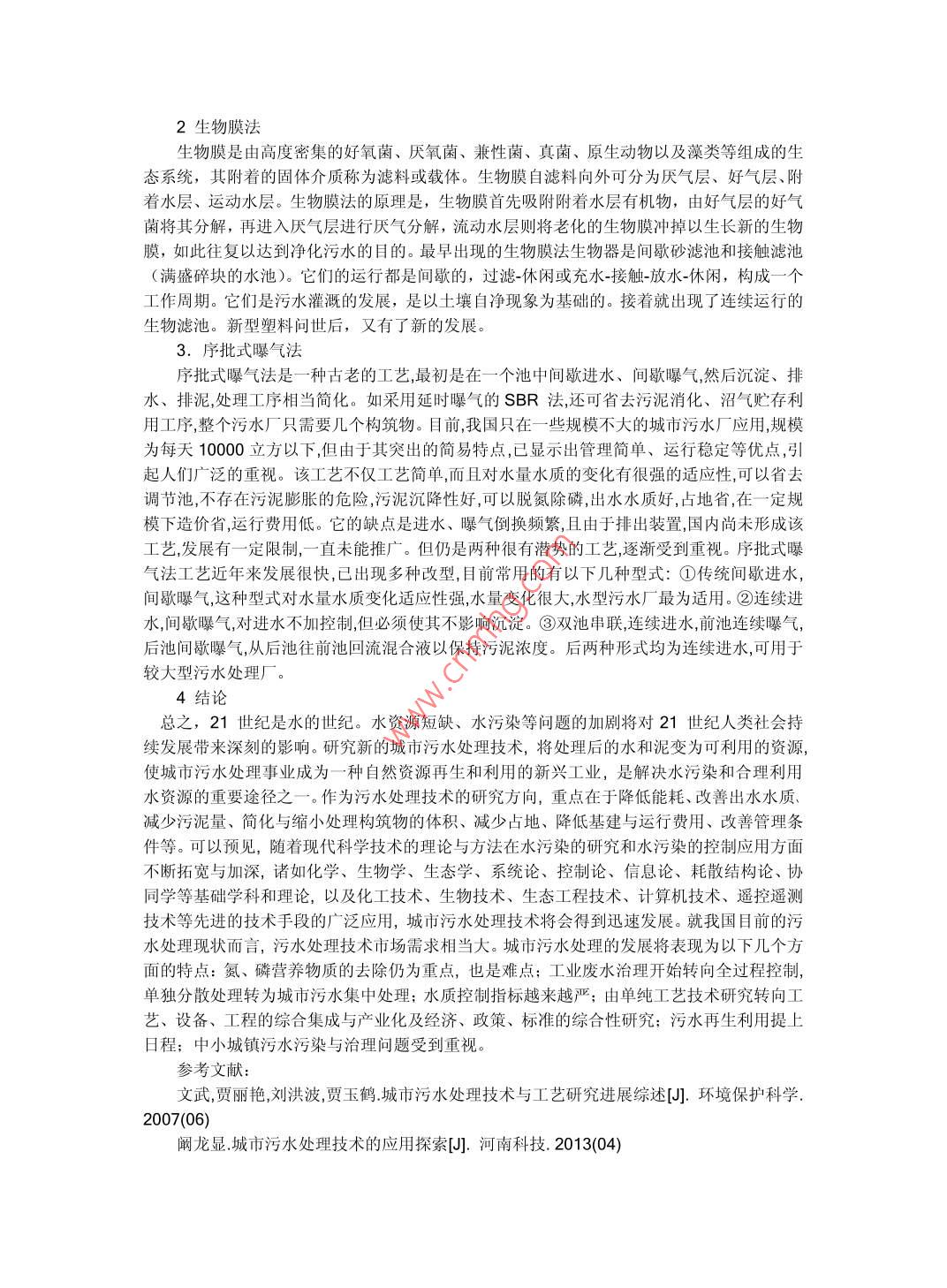 城市污水的處理工藝研究