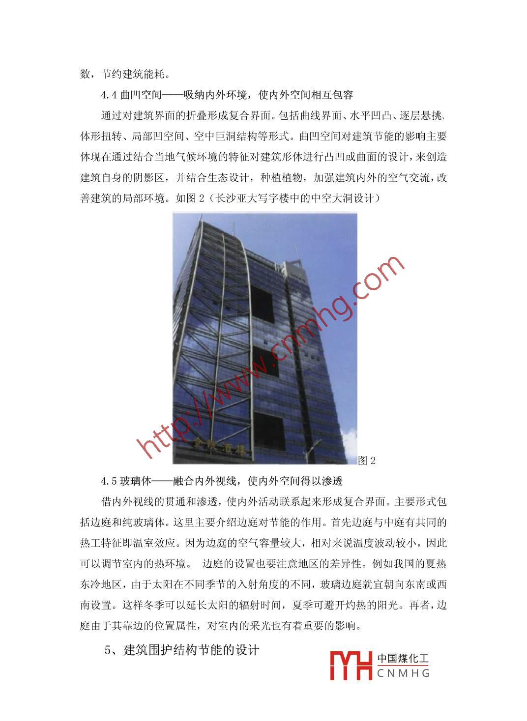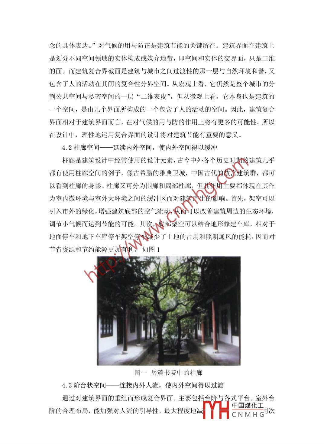 基于節(jié)能設(shè)計(jì)的建筑方案設(shè)計(jì)魏春玲重慶卓創(chuàng)國際工程設(shè)計(jì)有限公司重慶郵編401 120摘要:在國家大力提倡節(jié)能環(huán)保的背景下,節(jié)能環(huán)保已成為建筑設(shè)計(jì)未來發(fā)展的趨勢。而建筑設(shè)計(jì)中節(jié)能設(shè)計(jì)也已成為目前人們越來越重視的課題。本文分析了節(jié)能型的建筑設(shè)計(jì)方案。關(guān)鍵詞:整體規(guī)劃與建筑群布局;建筑單體設(shè)計(jì);中圖分類號: TU2文獻(xiàn)標(biāo)識碼: A文章編號:引言改革開放以來,中國建筑業(yè)發(fā)展迅速,高速發(fā)展的經(jīng)濟(jì)和日益提高的生活水平,促進(jìn)了人們對舒適的房屋居所的需求。然而很多建筑過度追求建筑物的規(guī)模和外觀,大面積使用玻璃材料、辦公室- .年四季使用空調(diào)等都造成了巨大的建筑能耗。據(jù)報(bào)道,我國95%的既有建筑屬于不節(jié)能建筑,建筑耗能約占我國能源消耗總量的30%,建筑業(yè)污染約占環(huán)境總體污染的30%。能源匱乏、人均能源占有量低、環(huán)境污染的警鐘一再敲響, 建筑節(jié)能的重要性和必要性愈發(fā)明顯。具體到單體建筑而言,節(jié)能的措施有很多,可以從單體建筑設(shè)計(jì)、材料設(shè)備等方面達(dá)到節(jié)能的效果。而從建筑方案設(shè)計(jì)的角度來說,可以從下文幾個(gè)方面考慮。1、建筑節(jié)能概述建筑節(jié)能,在發(fā)達(dá)國家最初為減少建筑中能量的散失,普遍稱為“提高建筑中的能源利用率”,在保證提高建筑舒適性的條件下,合理使用能源,不斷提高能源利用效率。建筑節(jié)能具體指在建筑物的規(guī)劃、設(shè)計(jì)、新建(改建、擴(kuò)建)、改造和使用過程中,執(zhí)行節(jié)能標(biāo)準(zhǔn),采用節(jié)能型的技術(shù)、工藝、設(shè)備、材料和產(chǎn)品,提高保溫隔熱性能和采暖供熱、空調(diào)制冷制熱系統(tǒng)效率,加強(qiáng)建筑物用能系統(tǒng)的運(yùn)行管理,利用可再生能源,在保證室內(nèi)熱環(huán)境質(zhì)量的前提下,減少供熱、空調(diào)制冷制熱、照明、熱水供應(yīng)的能耗及控制搶窗的面積比等措施。2、建筑節(jié)能的重要性建筑節(jié)能是整個(gè)建筑全壽命過程中每一個(gè)環(huán)節(jié) 節(jié)中國煤化工生選YHCNM HG址、規(guī)劃、設(shè)計(jì)、建造和使用過程中,通過合理的規(guī)劃設(shè)計(jì),采用節(jié)能型的建筑材料、產(chǎn)品和設(shè)備,執(zhí)行建筑節(jié)能標(biāo)準(zhǔn),加強(qiáng)建筑物節(jié)能設(shè)備的運(yùn)行管理,合理設(shè)計(jì)建筑圍護(hù)結(jié)構(gòu)的熱工性能,提高采暖、制冷、照明、通風(fēng)、給排水和管道系統(tǒng)的運(yùn)行效率,以及利用可再生能源,在保證建筑物使用功能和室內(nèi)熱環(huán)境質(zhì)量的前提下,降低建筑能源消耗合理、有效地利用能源。隨著我國建筑業(yè)的不斷進(jìn)步,在日益發(fā)展的中國城市化建設(shè)中,建筑能耗可謂急速增長,已經(jīng)達(dá)到整個(gè)社會能源消耗量的32%以上,加之每年房屋建筑材料生產(chǎn)能耗13%,建筑總能耗已近全國能源總消耗量的45%。中國建筑面積為400億平方米絕大部分為高能耗建筑,在每年20億平方米新建筑建筑中,95%以上仍為高能耗建筑。在此情況下,必.須提高節(jié)能水平設(shè)計(jì)標(biāo)準(zhǔn),否則將留下過重的能耗負(fù)擔(dān),治理將困難重重。3、整體規(guī)劃與建筑群布局現(xiàn)階段,我國正處于一種大規(guī)模的建設(shè)格局之中,城市的面貌日新月異,新城建設(shè)和小區(qū)建設(shè)隨處可見。在這些大規(guī)模的建設(shè)項(xiàng)目中,首先就面臨著-一個(gè)選址問題。-一個(gè)項(xiàng)目的選址當(dāng)然會涉及到政治、經(jīng)濟(jì)、文化等多方面的因素,在這里僅從節(jié)能而不考慮其他方面的理想狀態(tài)來研究。在這種情況之下,選址的節(jié)能問題便成了一個(gè)與大自然資源的整合問題,及符合自然規(guī)律、盡量地利用自然環(huán)境資源來創(chuàng)造適合人類生存的條件。拿小區(qū)建設(shè)來說,我們就不宜將一個(gè)小區(qū)的選址布置在山谷、洼地、溝底等凹地里,這樣首先是影響了季風(fēng)的通行,不利于室內(nèi)的通風(fēng)換氣;其次,冬季冷氣流在凹地里會形成對建筑物的霜洞效應(yīng),而夏季形,成的低氣壓將導(dǎo)致更加悶熱的小氣候。雖然我們現(xiàn)在的科技水平完全可以做到通過人為的手段來消除這些不利因素,但這樣顯然不利于節(jié)能。在選址這個(gè)問題上,筆者認(rèn)為中國古代的匠人是做得很好并積累了-.些經(jīng)驗(yàn),“陰抱陽”、“背山面水”、“坐南朝北”等等都是古人在天人合一的思想指導(dǎo)下總結(jié)出的一些簡單易懂的實(shí)踐經(jīng)驗(yàn),并運(yùn)用這些經(jīng)驗(yàn)建設(shè)了大量舒適而風(fēng)景優(yōu)美的城市。我們今天掌握的知識和古人相比不可同日而語,更應(yīng)該繼承古人的精神,比古人做得更好。4、單體建筑設(shè)計(jì)中的節(jié)能措施4.1復(fù)合界面對建筑節(jié)能的作用“建筑界面的本質(zhì)意義就在于對有利和不利的氣候要素進(jìn)行選擇與離析,在于其“膜效應(yīng)”。膜效應(yīng)是對氣候用與防的辨證統(tǒng)一,中國煤化工理MHCNMHG念的具體表