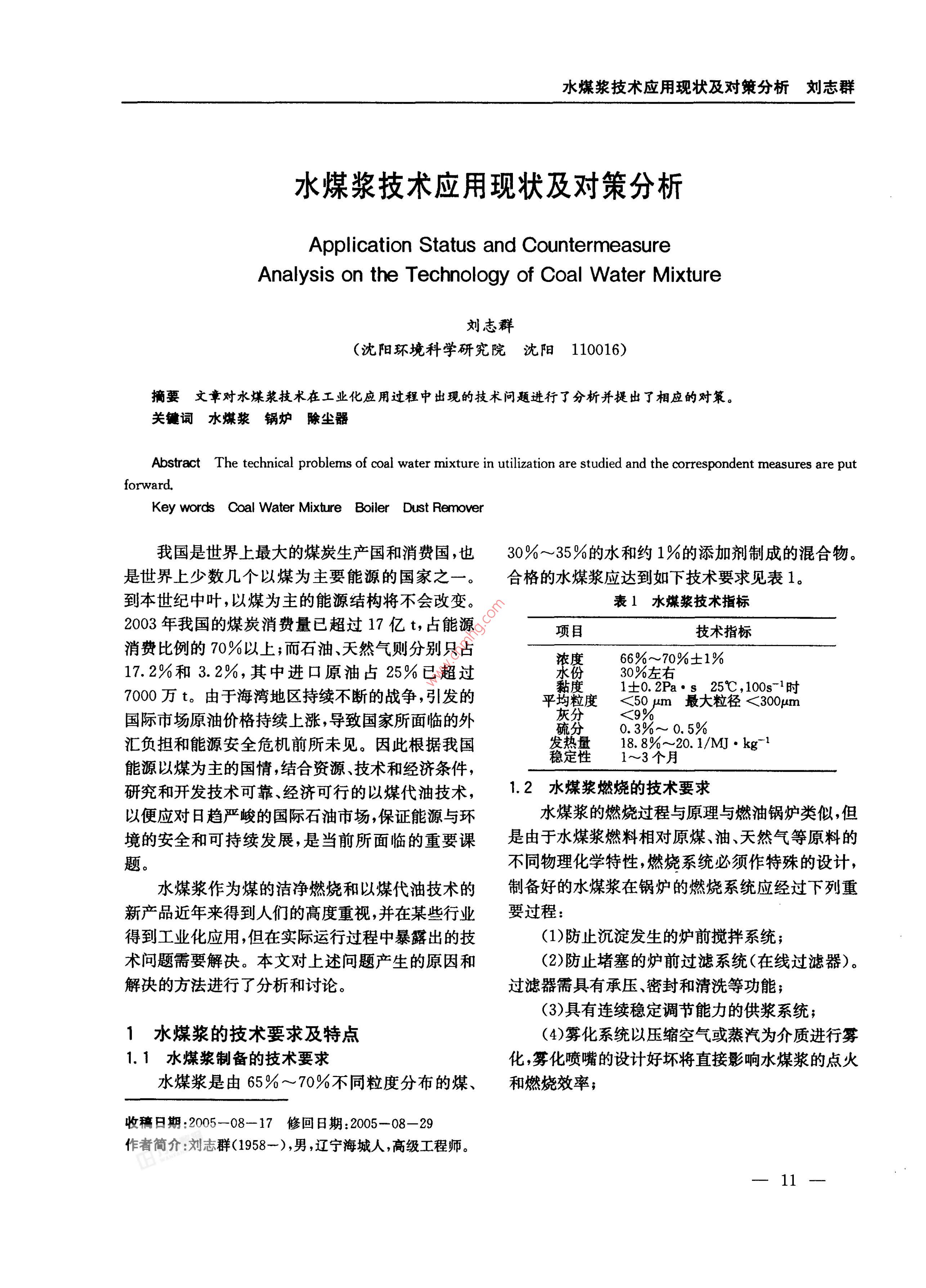 水煤漿技術(shù)應(yīng)用現(xiàn)狀及對(duì)策分析
