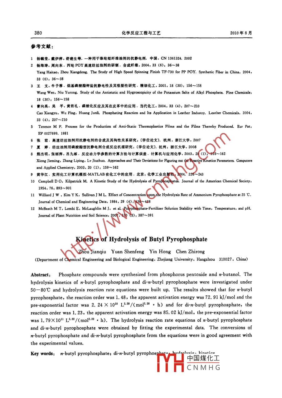 焦磷酸丁酯的水解動(dòng)力學(xué)