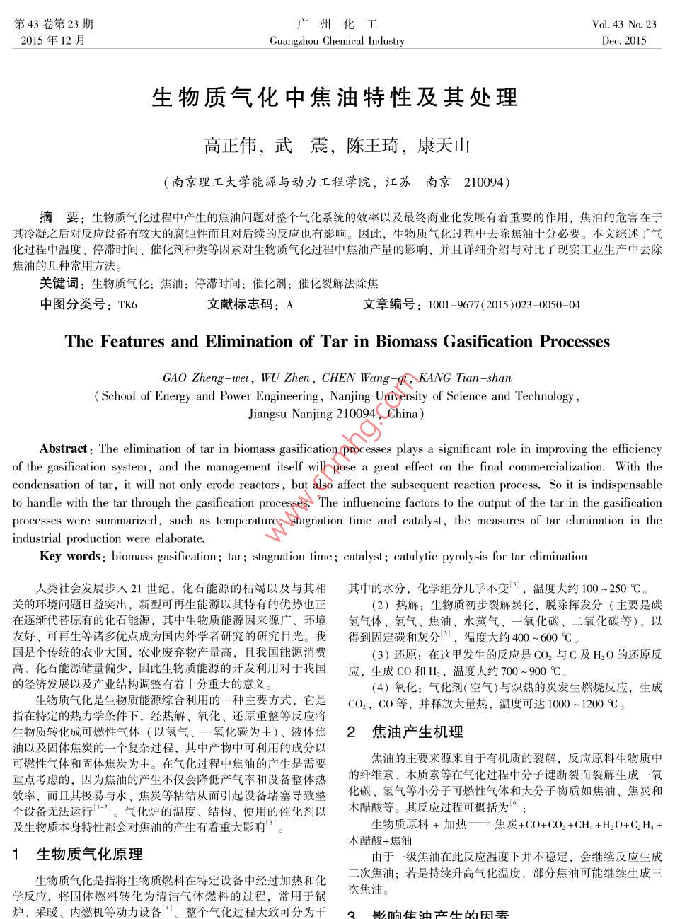 - 期刊名字:廣州化工