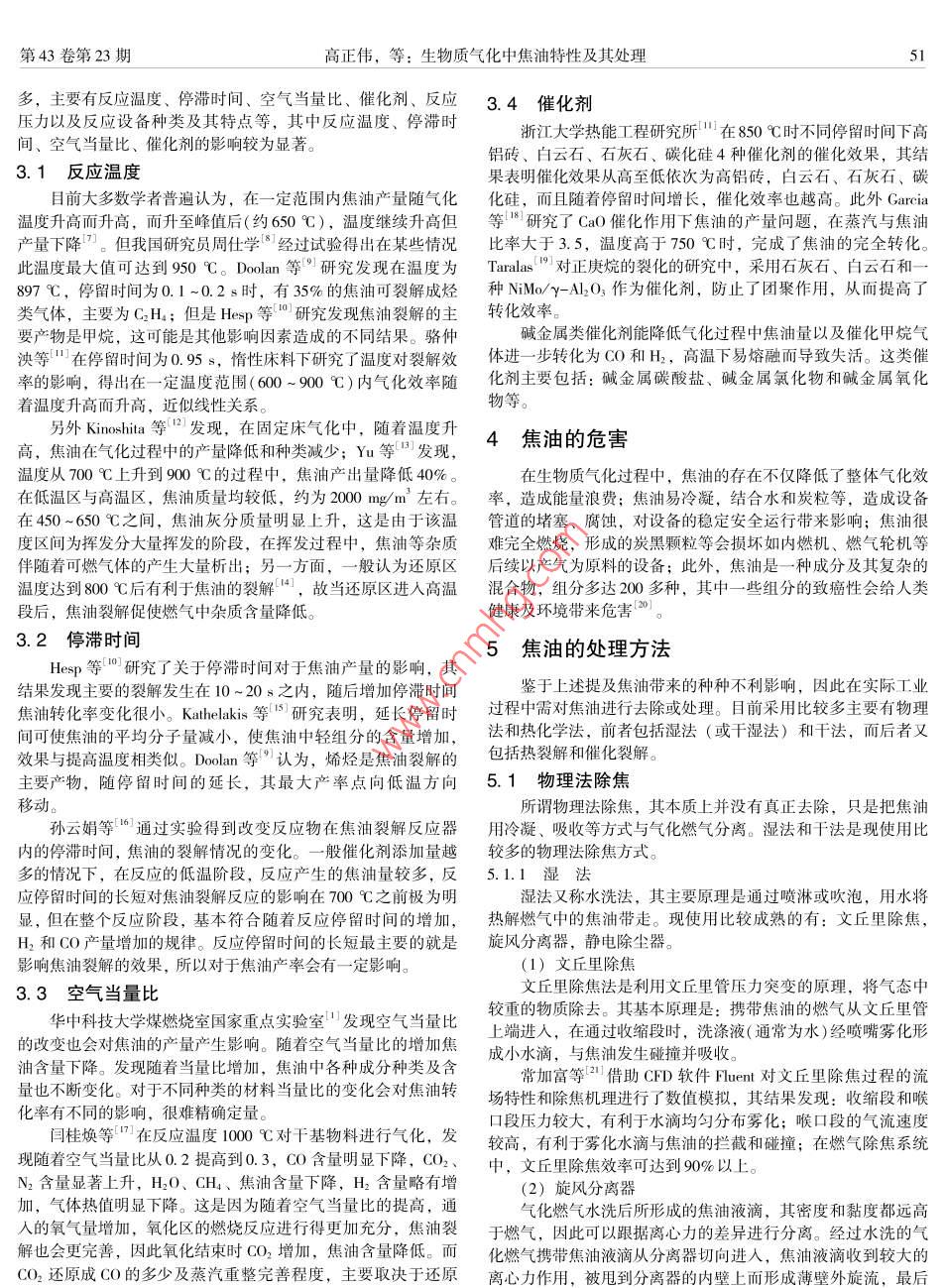 生物質(zhì)氣化中焦油特性及其處理