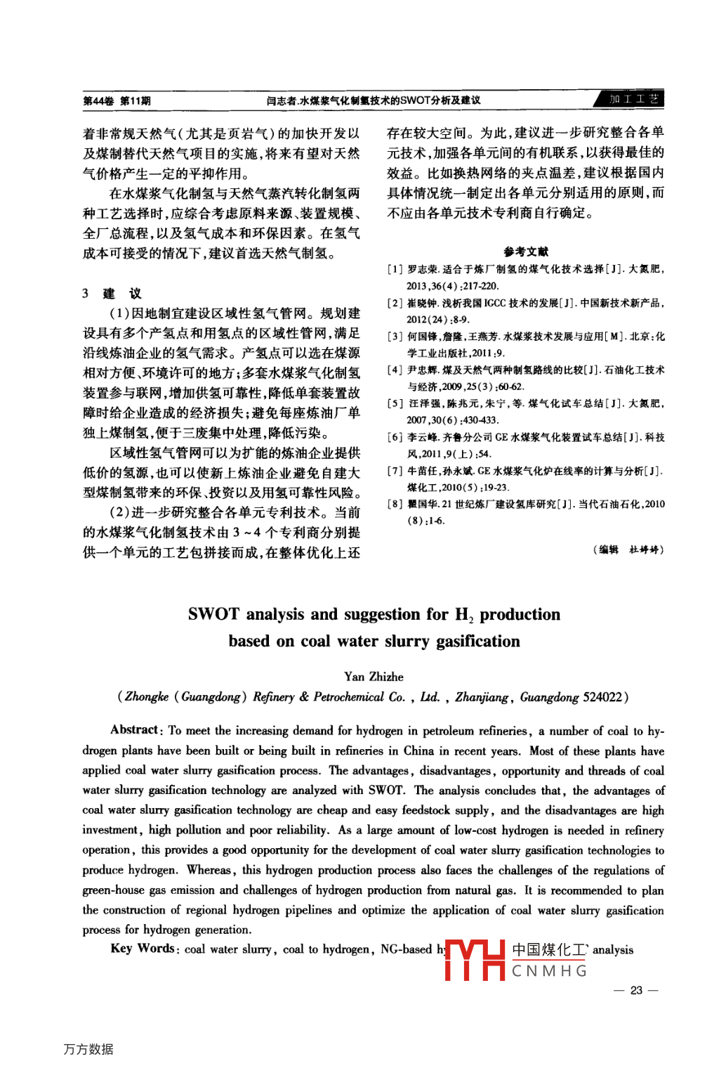 水煤漿氣化制氫技術(shù)的SWOT分析及建議
