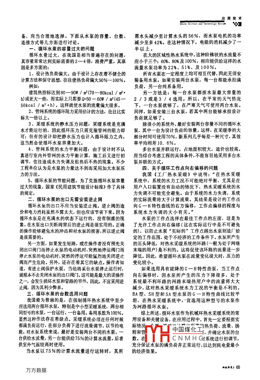 淺析采暖系統(tǒng)中循環(huán)水泵存在的問題