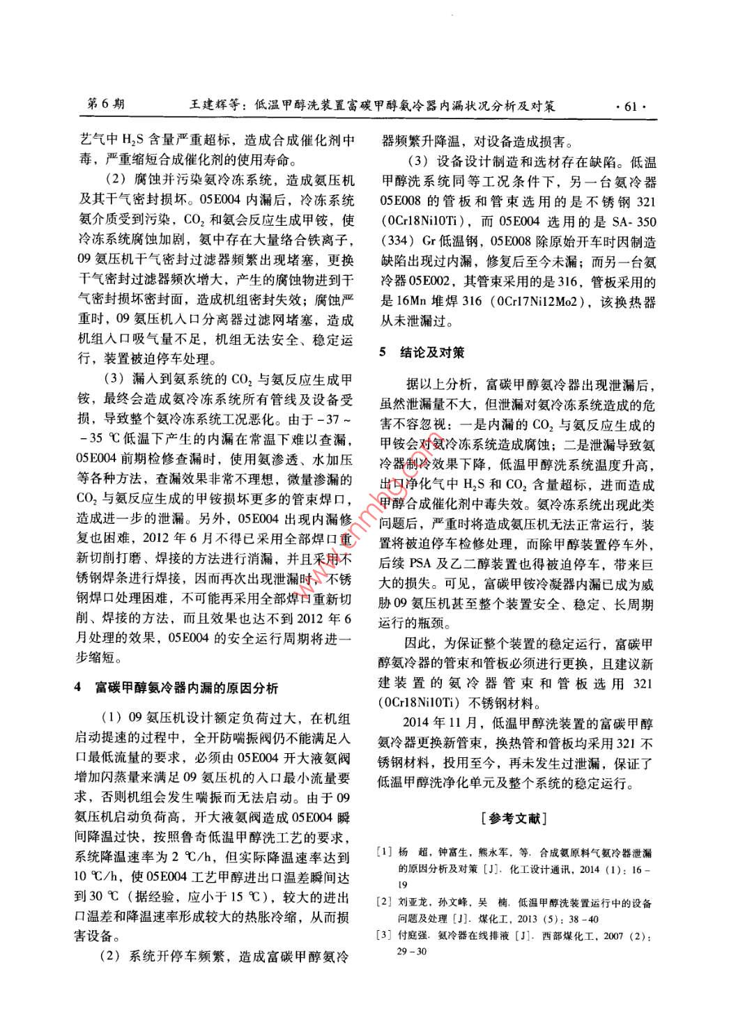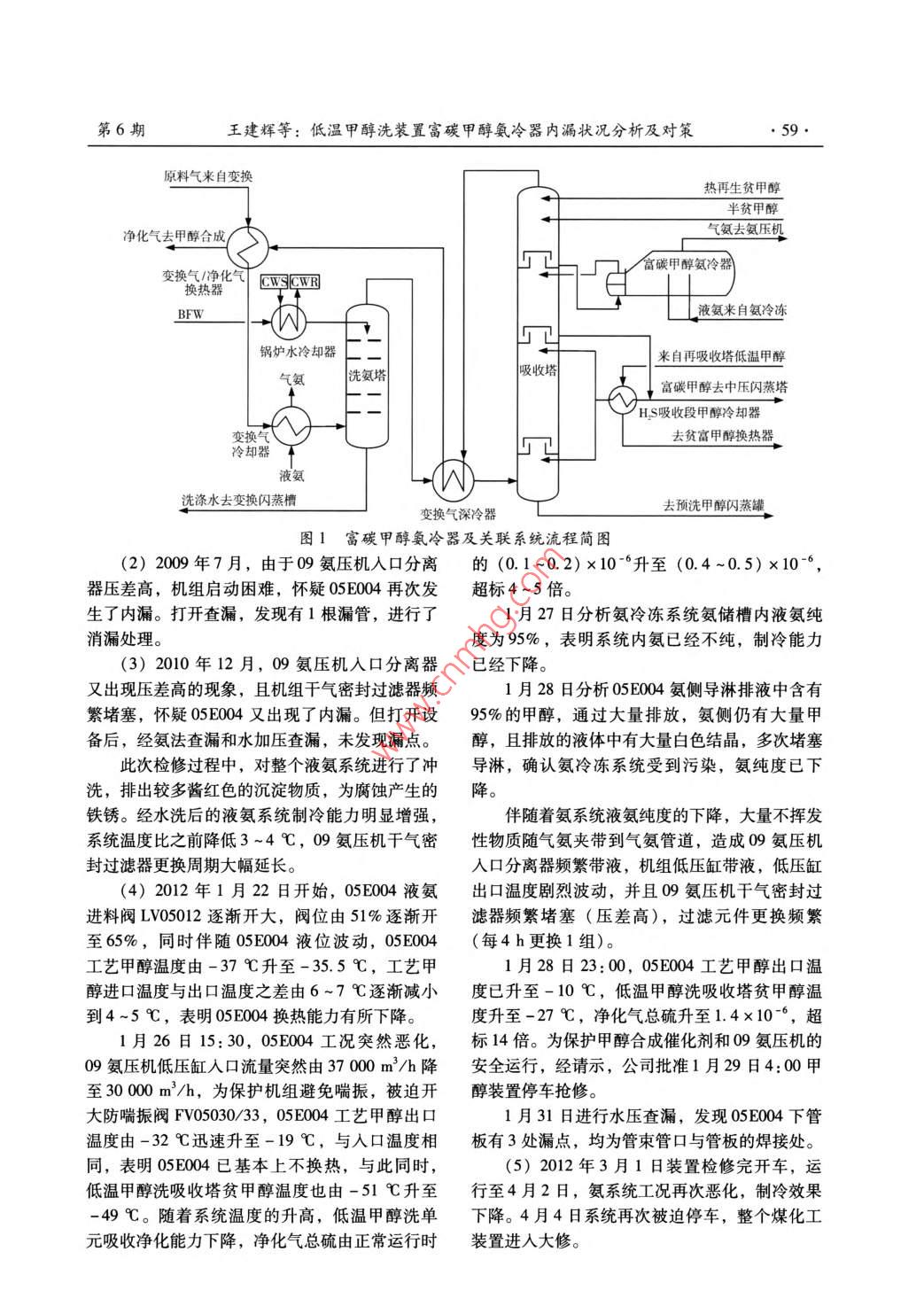 低溫甲醇洗裝置富碳甲醇氨冷器內漏狀況分析及對策
