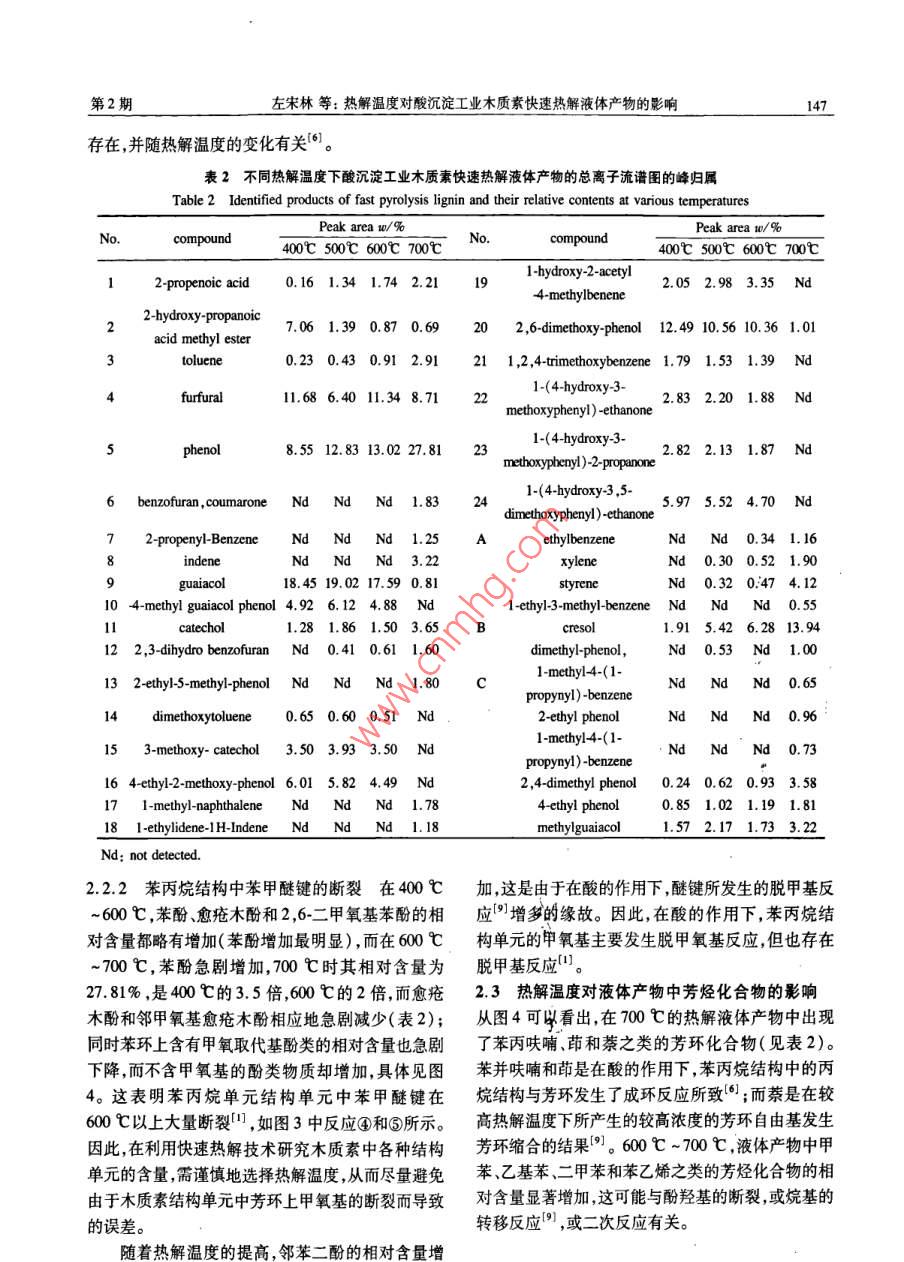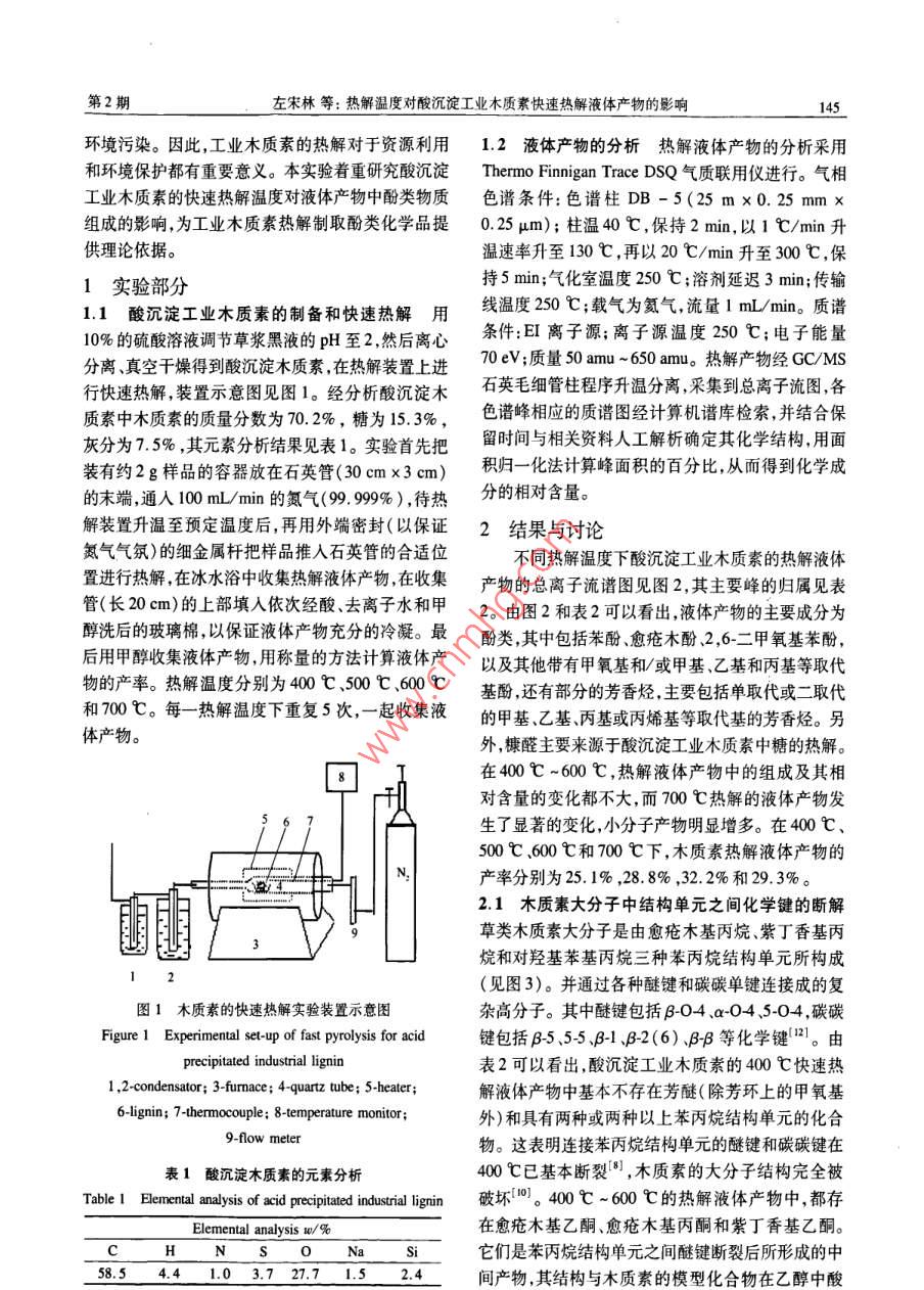 熱解溫度對(duì)酸沉淀工業(yè)木質(zhì)素快速熱解液體產(chǎn)物的影響 熱解溫度對(duì)酸沉淀工業(yè)木質(zhì)素快速熱解液體產(chǎn)物的影響