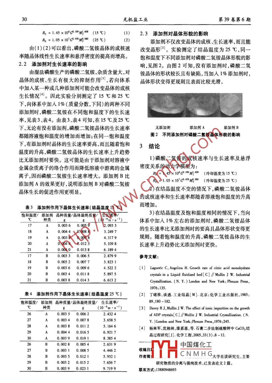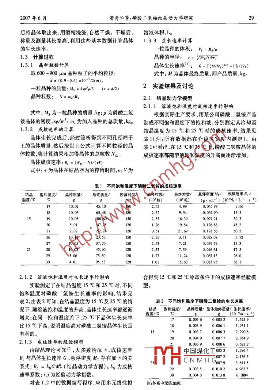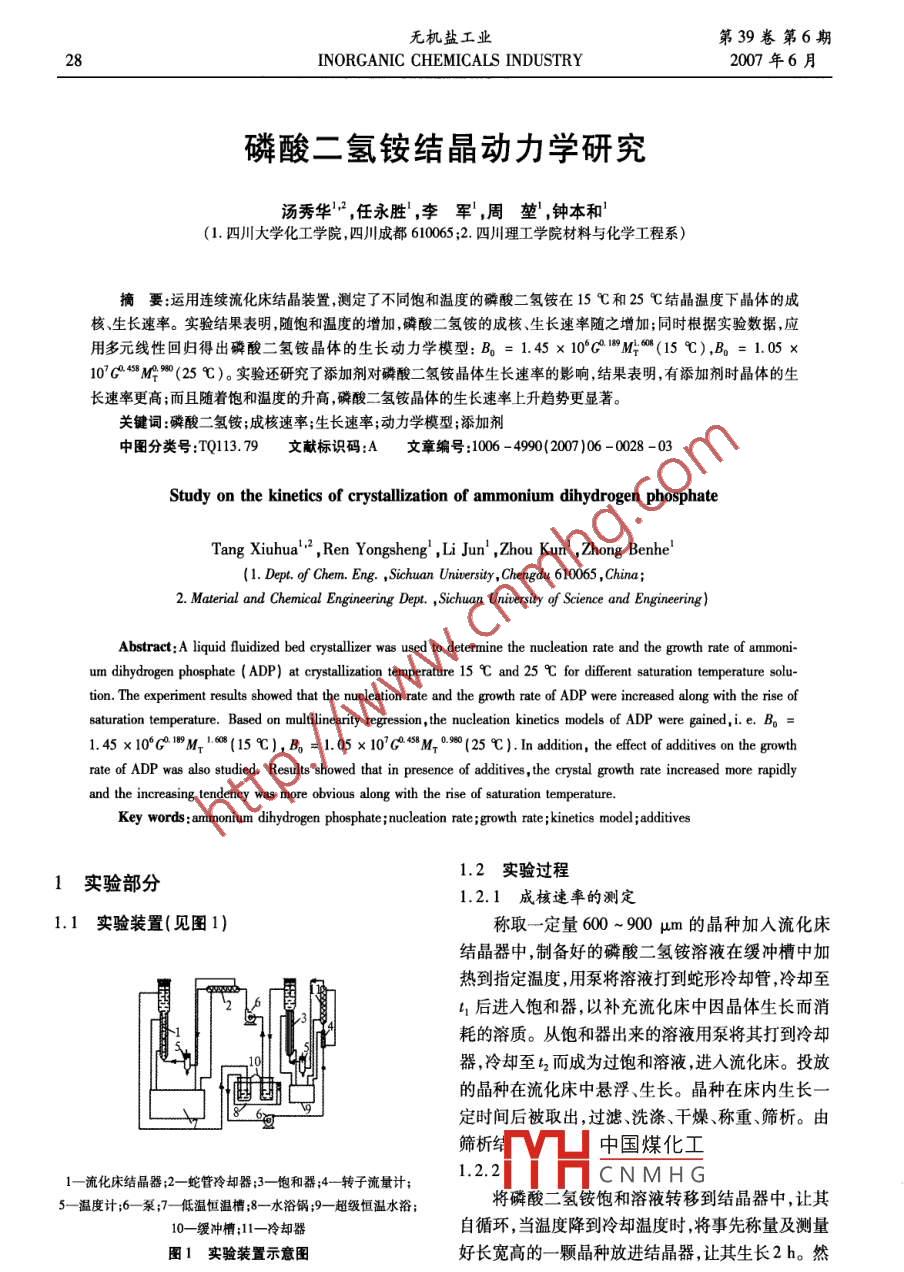 磷酸二氫銨結(jié)晶動(dòng)力學(xué)研究