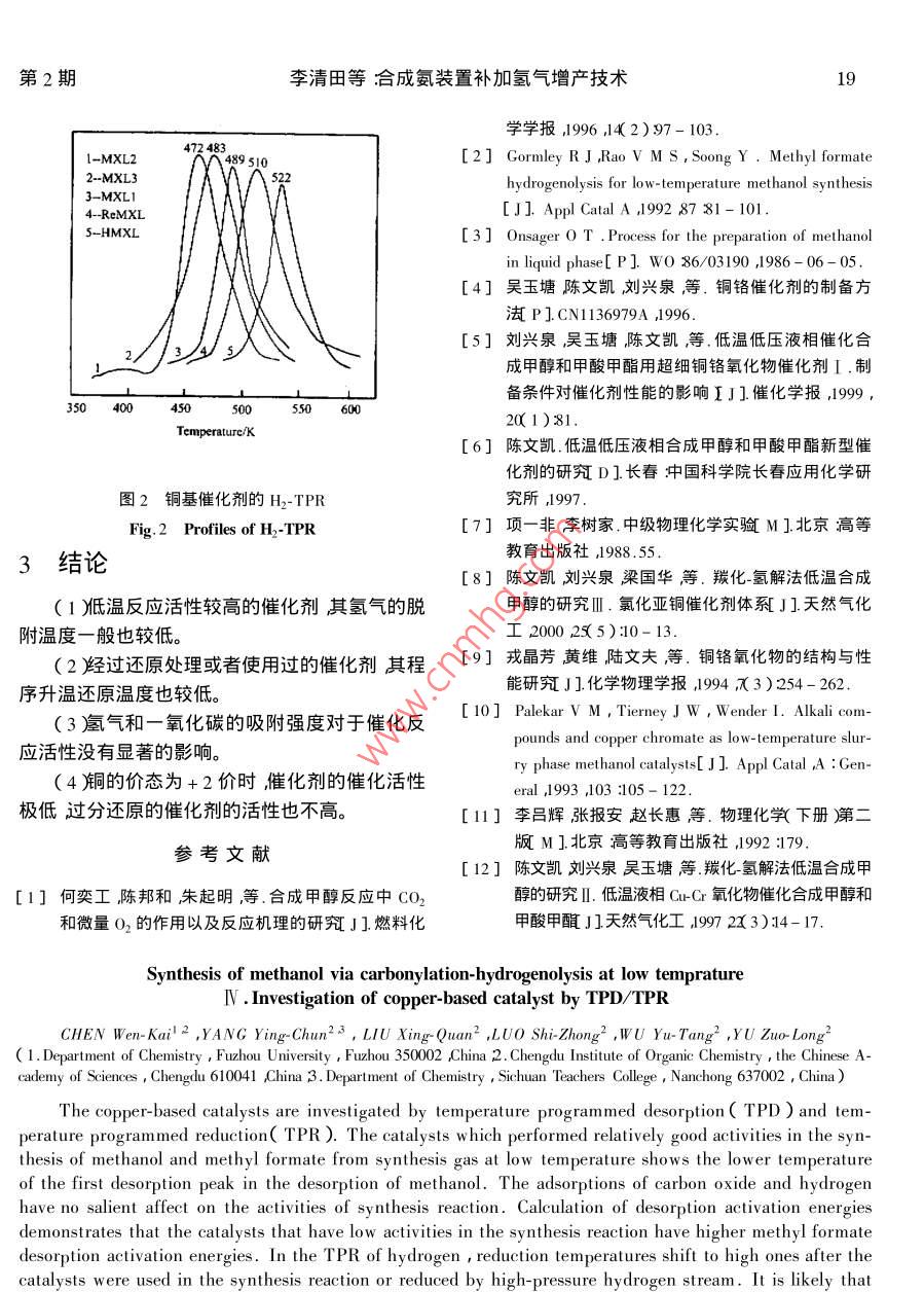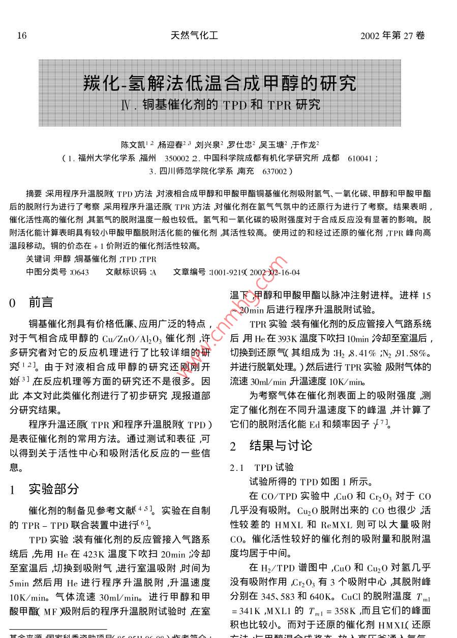 羰化-氫解法低溫合成甲醇的研究Ⅳ.銅基催化劑的TPD和TPR研究