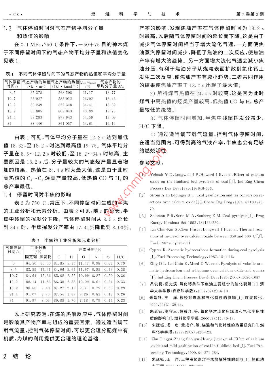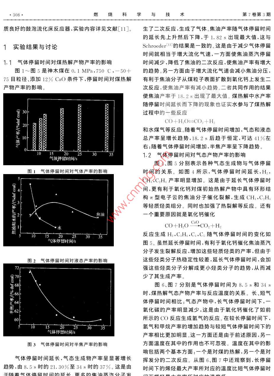 煤熱解過(guò)程氣體停留時(shí)間的影響